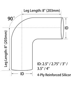 2. Tubo de 3″ ID, Longitud de la Pierna de 8″ de Silicona.