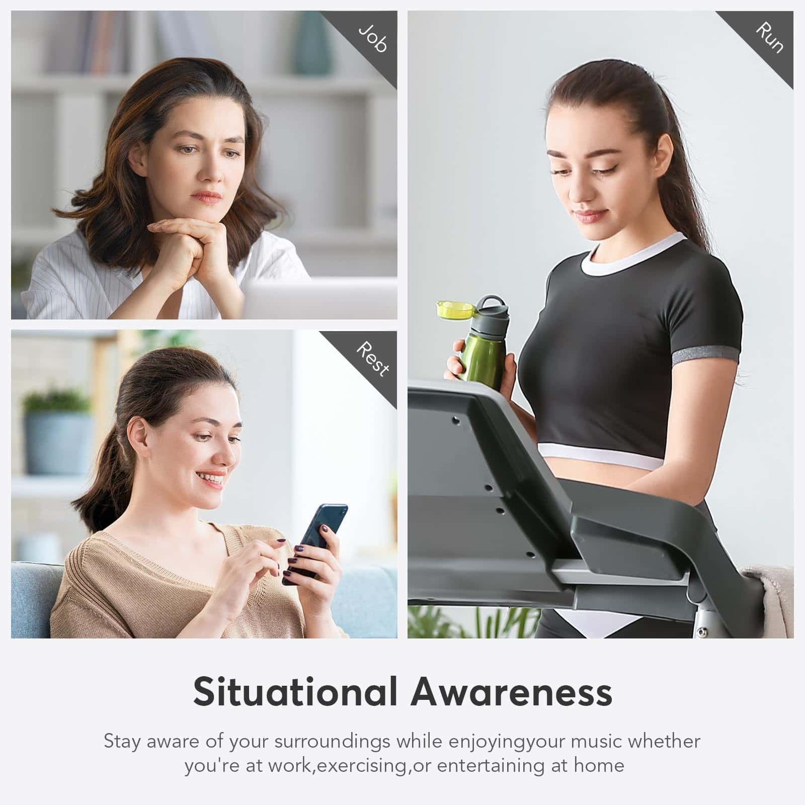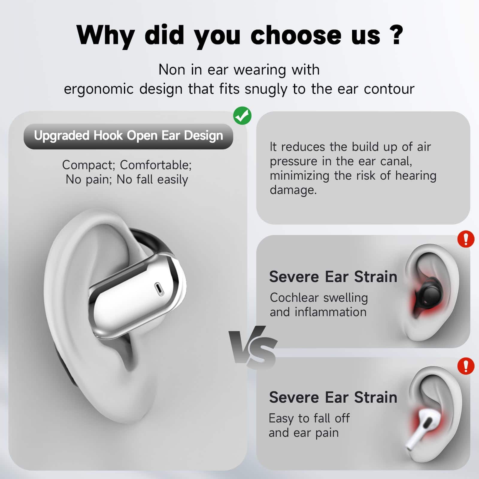 5. Peso ligero de 0.25 oz, comodidad de uso: Con solo 0.25 oz por auricular, nuestros auriculares de oreja abierta son casi imperceptibles, permitiéndote concentrarte en tu música o deportes sin distracciones de los auriculares. con un marco de aleación de titanio con memoria de 0.7 mm. El marco de aleación de titanio se adapta a las curvas del oído, asegurando una retención de forma óptima para un uso prolongado. La silicona amigable con la piel, con su tacto suave, fomenta una alta adhesión a la piel, eliminando la incomodidad para un uso saludable todo el día.