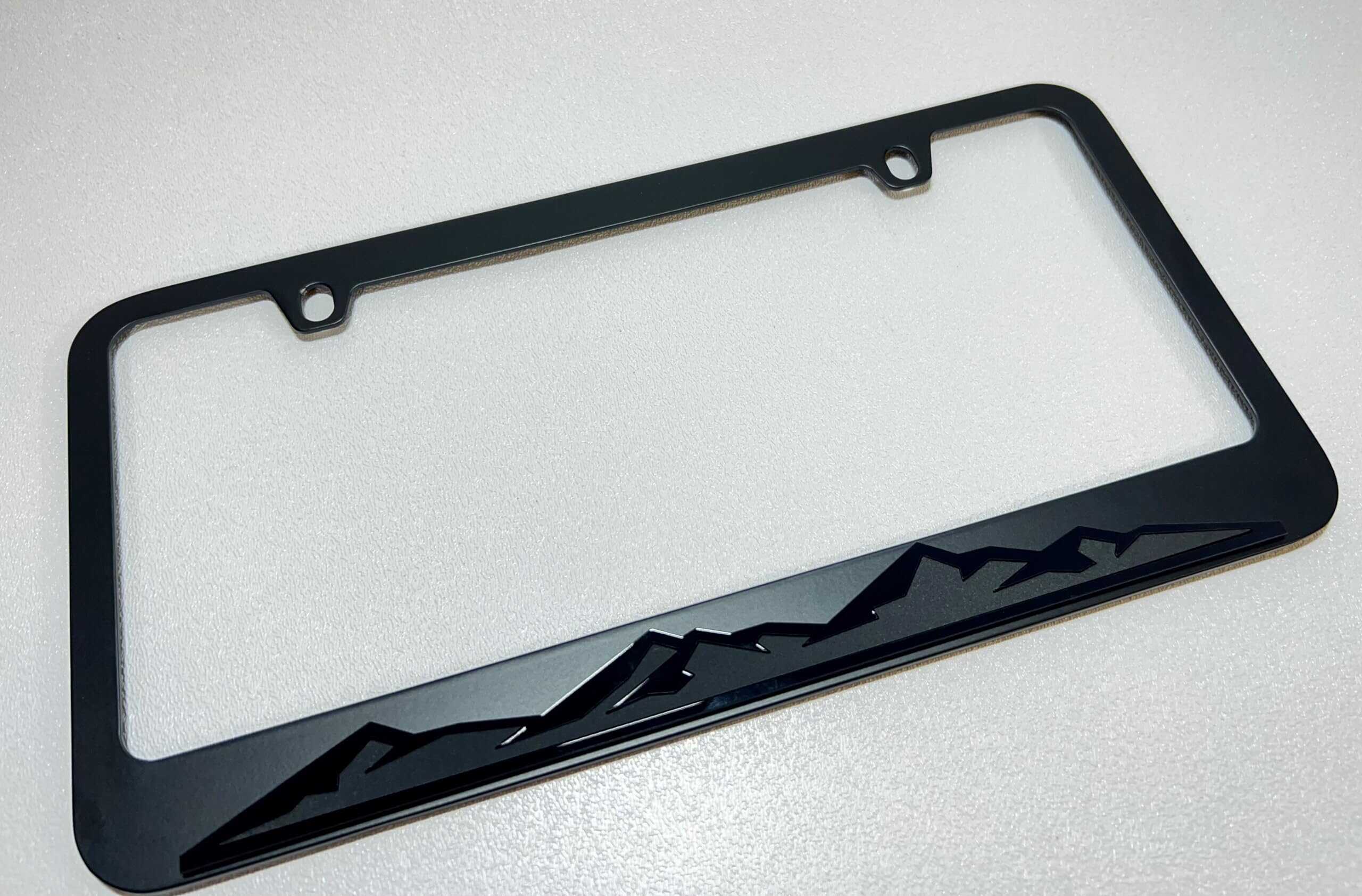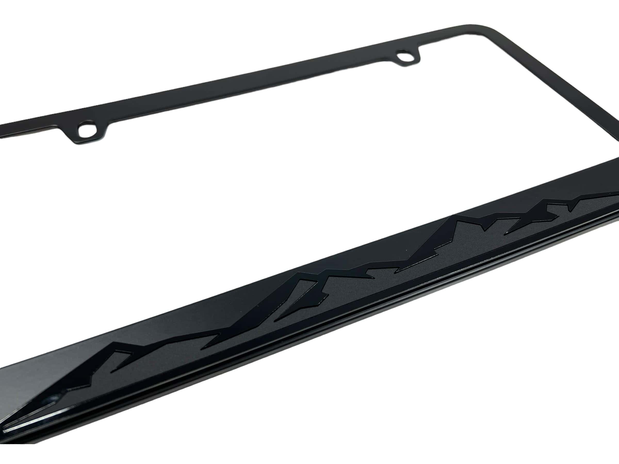 Marco de matrícula Eurosport Daytona Mountain Range en negro. Este marco está hecho de materiales de alta calidad, con diseños de acrílico cortados con láser que le dan un aspecto único. El marco está cromado o electrochapado en negro para mayor durabilidad y resistencia a la corrosión. Fabricado en los Estados Unidos, este marco cuenta con una garantía limitada de 1 año para brindar tranquilidad a los clientes. Con medidas de 6.25 pulgadas por 12.25 pulgadas por 0.2 pulgadas y un peso de 11 oz, este marco es perfecto para mostrar tu amor por las montañas.