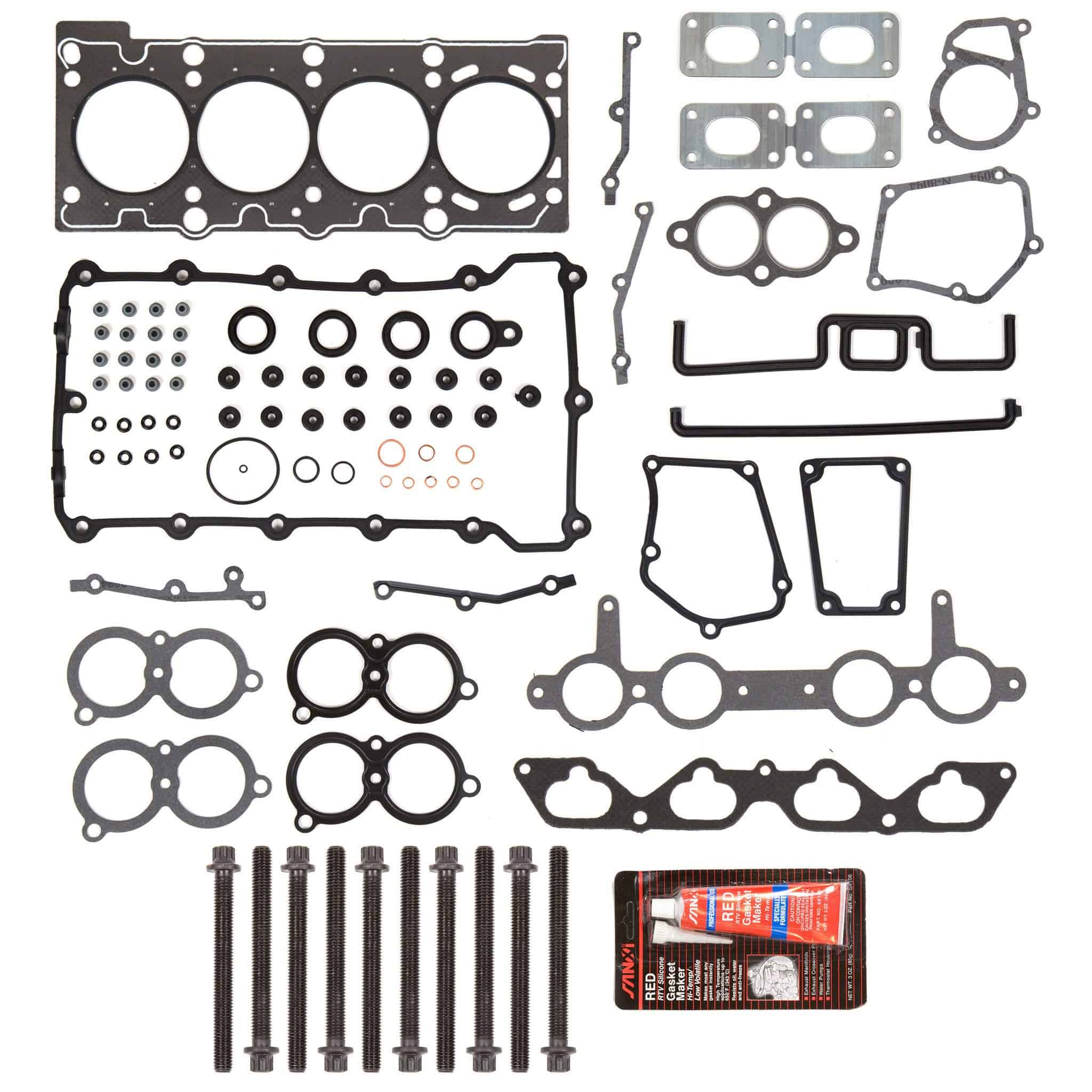 Este artículo incluye: Junta de Culata de Grafito, Junta de Tapa de Válvula, Sellos de Vástago de Válvula, Junta de Colector de Admisión, Junta de Colector de Escape, Sello de Leva Delantero, Anillos en O, Otras Juntas Pequeñas, Silicona RTV, 10 Pernos de Culata.