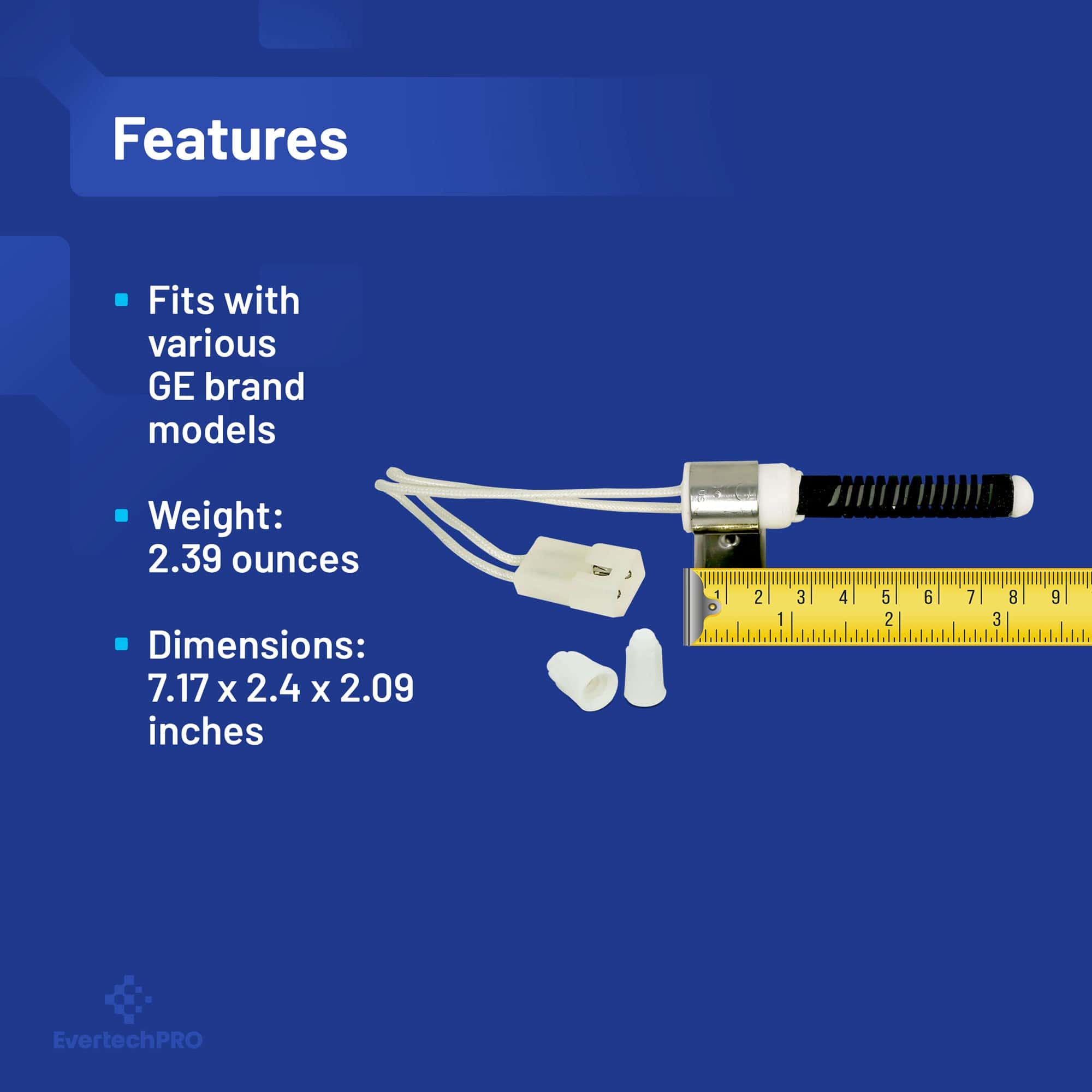 EvertechPRO Encendedor de Repuesto para Secadora Número de Pieza WE4X739 reemplaza 1847 AH268186 EA268186 PS268186 WE04X0739 WE04X10128 WE4X739. Este no es un producto OEM de GE. Compatible con Secadoras GE, modelos incluyendo 2671532210 BJLR473GT0WW BJLR473GV0WW BVLR333GT0WW BVLR333GV0WW BWXR473GT0WW BWXR473GT2WW BWXR473GT3WW BWXR473GT5AA BWXR473GT5WW DBB3300GA0AA DBB3300GA0WW DBB… (truncated for brevity)