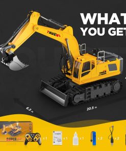 Con un cubo de metal y pala cargadora, plataforma de rotación de 680 , orugas de goma y luces y sonidos decentes, esta excavadora de control remoto es un excelente juguete de construcción para niños a partir de 6 años en adelante. La excavadora es perfecta para todas las estaciones.