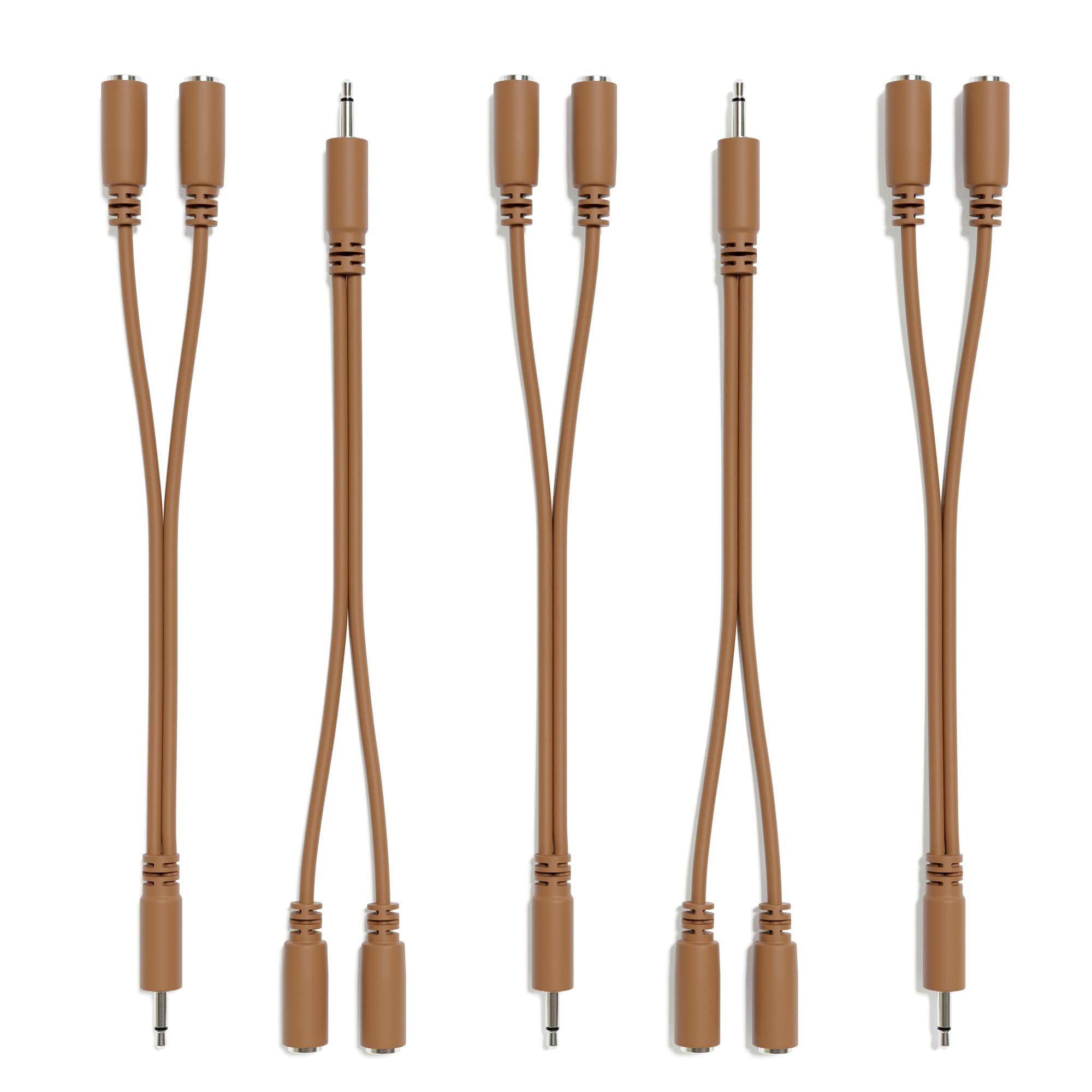 Pack conveniente de 5 cables con 1 color y 1 longitud. Cable divisor mono Y con 1 macho a 2 hembras – TS 3.5 mm (1/8″) para tu sintetizador modular Eurorack, u otras tareas generales de parcheo. Cables moldeados completamente construidos de alambre de cobre trenzado 26AWG. Compatible con: Roland, Moog, Doepfer, Arturia, Korg