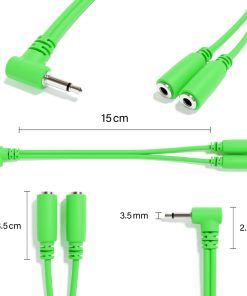 Este tipo de Cables de Empalme Modular son cables de empalme 1/8″ TS con extremos moldeados para una durabilidad excepcional. Disponibles en una variedad de colores, perfectos para mantener un seguimiento de tus señales de CV, gate y audio. Fiabilidad sobresaliente de la señal, con conductores de alambre trenzado de calibre 26 y conectores niquelados. Características: Solo 13 mm de alto cuando se empalma Cables de empalme completamente moldeados construidos con cable de cobre trenzado de calibre 26AWG 99.99% de cobre puro y libre de oxígeno Conectores niquelados proporcionan alta protección contra la corrosión Alivio de tensión flexible Compatible con: Roland, Moog, Doepfer, Arturia, Korg. Especificaciones: Pack conveniente de 5 cables con 1 color y 1 longitud Conectores: 1 x Macho – TS 3.5 mm (1/8″ – 1/8 pulgada) – Enchufe Mono Analógico – Angulado 2 x Hembra – TS 3.5 mm (1/8″ – 1/8 pulgada) – Conector Mono Analógico Tipo: Cables de Empalme Mono Tamaño del cable: 26 AWG – Calibre Americano de Cable División de conexión: 1:2 Longitud del cable: 15 cm – 5.91 pulgadas – 0.49 pies Color (Opciones): Verde Militar Negro Azul Marrón Verde Gris Naranja Melocotón Rosa Morado Rojo Blanco Amarillo