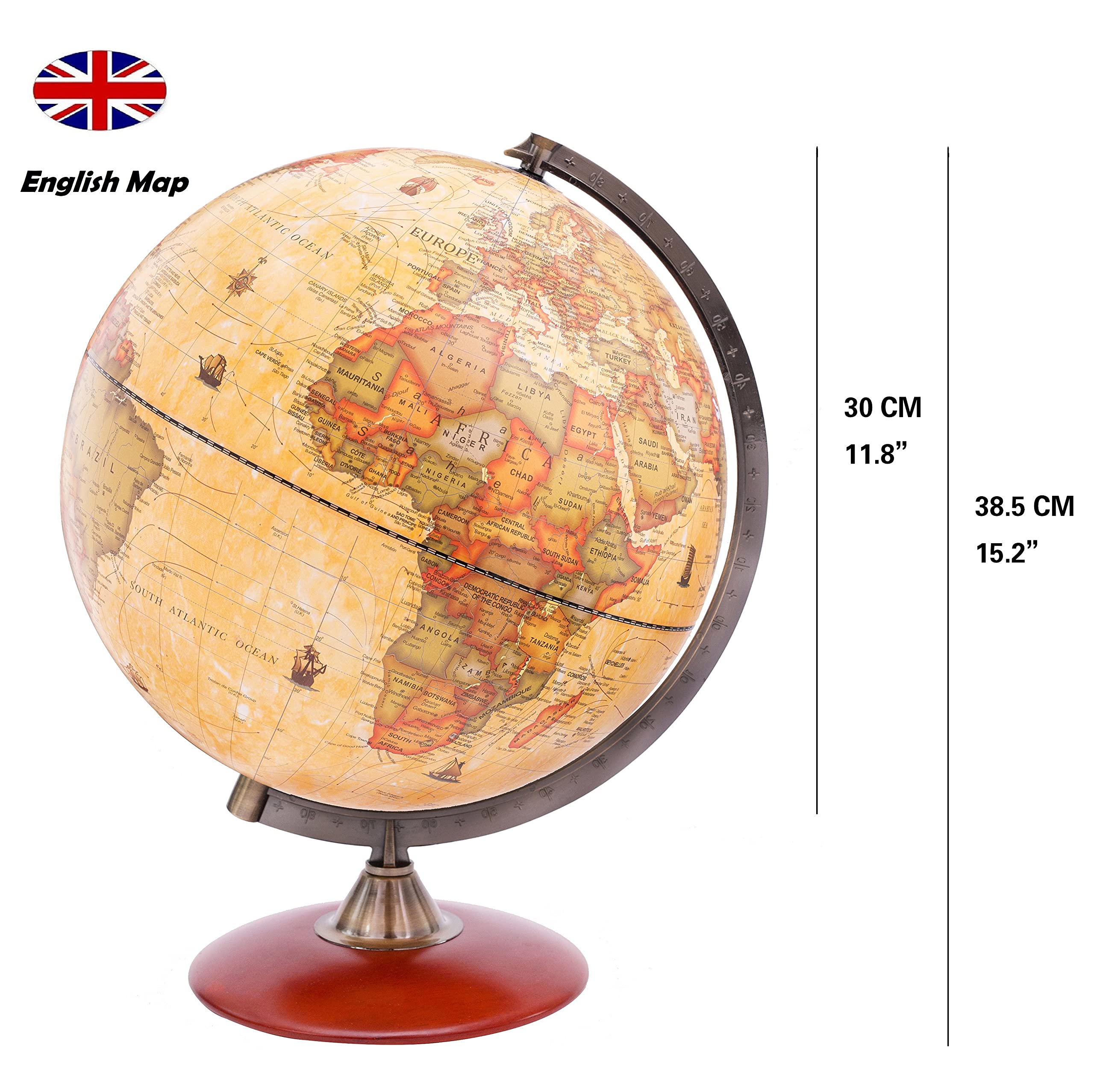 Exerz Globo Antiguo de 12″ con Base de Madera – Globo