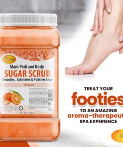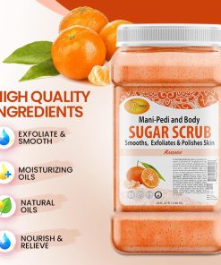 Spa Redi – Exfoliante corporal de azúcar, mandarina, 128 oz, exfoliante, hidratante, nutritivo, brillo, pulido, piel suave y fresca – exfoliante corporal. Meticulosamente elaborado en los Estados Unidos desde 1987 para uso familiar y de todas las edades. Nuestra amplia gama de productos incluye cuidado del cabello, cuidado de la piel, cuidado de los pies y esenciales de salón y spa, diseñados para un cuidado personal suave y efectivo en todas las edades; ideal para las rutinas diarias de belleza y relajación familiares; hecho con ingredientes de calidad que garantizan un uso seguro para personas de todas las edades.