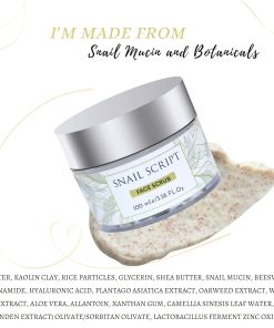EXFOLIANTE FACIAL SNAIL SCRIPT, Exfoliante facial diario con esencia de caracol, nuestro mejor exfoliante avanzado de mucina de caracol infundido con partículas puras de exfoliación hechas de arroz. Cuidado diario de la piel del rostro para una piel radiante, fresca y luminosa para limpiar los poros, minimizar las imperfecciones de la piel, hidratar, rejuvenecer, tensar, iluminar y rellenar la piel fatigada. Firme líneas finas y patas de gallo al instante con nuestra mascarilla de arcilla para el cuidado de la piel que proporciona una piel renovada, limpia, cuidado del acné, rejuvenecimiento de la piel potenciado por péptidos, vitaminas y botánicos. Experimenta la mejor mascarilla exfoliante facial diaria. 100% ORGÁNICO Y DERIVADO DE MANERA NATURAL, ingredientes únicos potenciados por la Filina de los ingredientes de la naturaleza de las montañas europeas preparados con esencia de mucina de caracol – alimento de la piel para una tez sana. UNA PROMESA PARA TI que nuestro producto premium de exfoliante facial iluminador activa una complexión radiante, más saludable y de aspecto más joven a través de mezclas que restauran y nutren la piel. UTILIZAMOS LA MUCINA DE CARACOL RECOLECTADA ÉTICAMENTE a través de un entorno de cultivo a cielo abierto libre de crueldad, apoyando caracoles felices y saludables que producen Oro Líquido para la piel. PARA TODO TIPO DE PIEL incluso para piel seca y sensible. Snail Script es 100% natural, no comedogénico, cero aceites minerales sintéticos o conservantes, sin poros obstruidos, resultados ásperos o irritantes, nuestros productos están aprobados por dermatólogos, formuladores de cuidado de la piel coreanos y la línea de cuidado de la piel natural preferida.