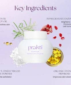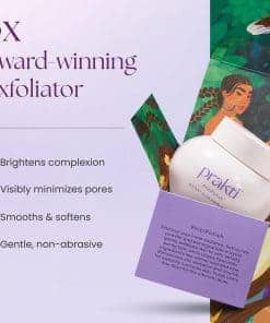 El Exfoliante Instantáneo Prakti PritiPolish es una fórmula suave que ayuda a exfoliar la piel para obtener una tez radiante y luminosa. Contiene Polvo de Arroz Oryza Sativa, que pule delicadamente la piel para una apariencia radiante. El Aceite de Raíz de Vetiver suaviza la piel y minimiza la apariencia de los poros, proporcionando una textura de piel más definida y uniforme. El Aceite de Onagra mejora la elasticidad de la piel y realza su textura, revelando una piel más joven y saludable. El Extracto de Granada, rico en AHAs naturales, ayuda a eliminar las células muertas de la piel y estimula la renovación celular, dejando la piel resplandeciente y renovada. Este exfoliante forma parte de una línea de cuidado de la piel limpia y consciente, siendo vegano, libre de crueldad animal y de ingredientes nocivos como parabenos, sulfatos y fragancias artificiales.