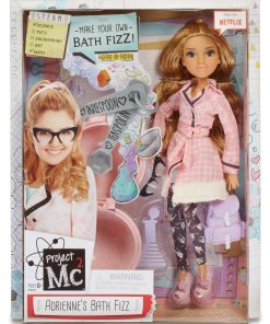 Project Mc2 es un equipo de cuatro chicas super inteligentes y realmente geniales que utilizan su amor por la ciencia y sus habilidades de espías mientras realizan misiones para la organización secreta, NOV8 (¡innova!). ¡Y ahora hay dos nuevas reclutas! Son chicas reales con habilidades reales listas para enfrentarse a cualquier cosa. ¡Mira nuevos episodios de la serie original de Project Mc2, solo en Netflix! Ahora puedes llevar a cabo un experimento en casa con Adrienne Attoms, la química culinaria residente de Project Mc2 (¡sí, es una cosa!). Haz tu propio baño efervescente utilizando ingredientes seguros del hogar como bicarbonato de sodio, ácido cítrico y vainilla. Usualmente, utilizas la clásica reacción de bicarbonato de sodio (una base) y vinagre (un ácido) para crear burbujas de gas dióxido de carbono. En esta ocasión, utilizamos ácido cítrico en lugar de vinagre porque es un sólido. Ahora puedes premezclarlo con bicarbonato de sodio, moldearlo en una bola y luego activarlo más tarde poniendo la bola en agua para crear burbujas efervescentes. Los otros ingredientes — como vainilla, brillantina, confeti y colorante alimentario — simplemente hacen tu baño más relajante y divertido. Características del producto: – Muñeca articulada premium de Adrienne, vestida con un atuendo completamente genial que refleja su personalidad y estilo único. ¡Mira de cerca, tantos detalles bonitos! – Accesorios para la muñeca incluyen: sus gafas, mochila personalizada y peine en forma de probeta – También incluye divertida actividad científica: molde para baño efervescente para experimentar una y otra vez – Ingredientes del hogar no incluidos – La muñeca mide 11.75 pulgadas de alto – Edades: 6+ años