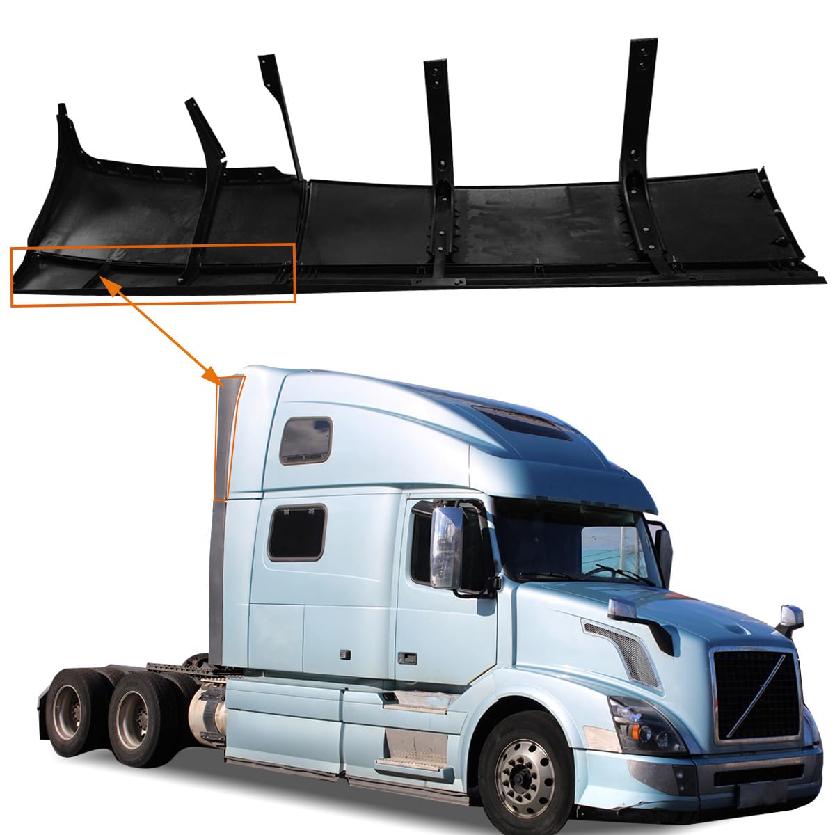 Extensión de cabina superior Unitedlu compatible con Volvo VNL 1997-2017 es un accesorio esencial para mejorar la eficiencia y el aspecto de su camión. Hecho con plástico de alta calidad y duradero, esta extensión de cabina está diseñada para soportar las duras condiciones climáticas y el uso diario.