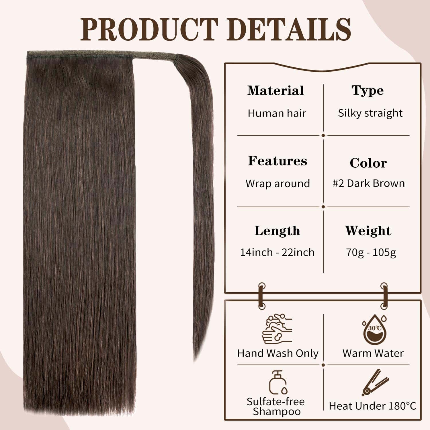 Extensión de Cola de Caballo de Cabello Humano de 16″ #2