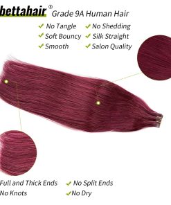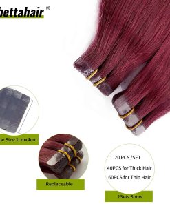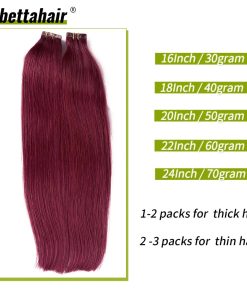 Extensiones de Cabello Adhesivas en Cabello Humano 20 Piezas Doble Cara Cabello Borgoña Invisible Cinta Sin Costuras Pelo Real 60 cm Adhesivo Remy Recto Vino Rojo 70 g para Mujeres. 1. Extensiones de Cabello Remy Adhesivas en Cabello Humano–100% Extensiones de Cabello Remy, fácil de rizar, alisar y teñir al color que necesitas, mejor combinación con el color de tu propio cabello. Las extensiones adhesivas pueden ser reutilizadas simplemente añadiendo nueva cinta y completamente invisibles, como si el cabello estuviera creciendo desde tu propio cuero cabelludo. 2. Extensiones de Cabello de Calidad Premium 9A–Extensiones de Cabello Ubetta hechas de cabello alineado en la misma dirección 100%, asegurando una calidad de extensiones de cabello garantizada, sin enredos, sin caída, sin sequedad y sin puntas abiertas. El cabello es suave y rebosante de vida, saludable, puedes rizarlo hasta 180 grados Celsius. 3. Cinta Adhesiva Reemplazable e Invisible–Extensiones adhesivas de cinta de piel invisible de doble cara, cintas reutilizables, hipoalergénicas, sin pérdida de cabello, duraderas, no es fácil que se caigan. Reemplaza las cintas cada 4-6 semanas. Comparadas con las extensiones de clip, las extensiones de cinta adhesiva transparente son más discretas e invisibles, se mezclan bien con tu propio cabello, más naturales y versátiles para muchos estilos de peinado: como los peinados de cola de caballo y moños. La cinta será mucho más fuerte después de calentarse adecuadamente. 4. Extensiones de Cabello de Color Adhesivas–Extensiones de cabello con reflejos balayage ombre adhesivas en cinta, muchas extensiones de cabello de colores disponibles para que elijas, para combinar con el color de tu propio cabello. 60 cm/70 g. Fácil de obtener la longitud y el volumen de cabello deseados añadiendo las extensiones de cabello adhesivas. Obtén pronto las extensiones de cabello con reflejos eligiendo las extensiones de cabello de color similar a tu cabello natural. 5. Extensiones de Cabello Adhesivas de 20/40 piezas–Ancho de 1.5 pulgadas, 20 piezas por paquete. Si tienes cabello grueso, 1-2 paquetes para aumentar el volumen del cabello y 3-4 paquetes para aumentar la longitud del cabello, si tienes cabello fino, 3-4 paquetes para aumentar el volumen del cabello y 1-2 paquetes para aumentar la longitud del cabello. Longitudes de 40-60 cm disponibles. La extensión del cabello es igual que nuestro propio cabello, tiene vida propia, por lo que necesita más cuidados que nuestro propio cabello para prolongar el tiempo de uso de las extensiones. Cualquier otro problema, por favor háznoslo saber enviándonos un correo electrónico.