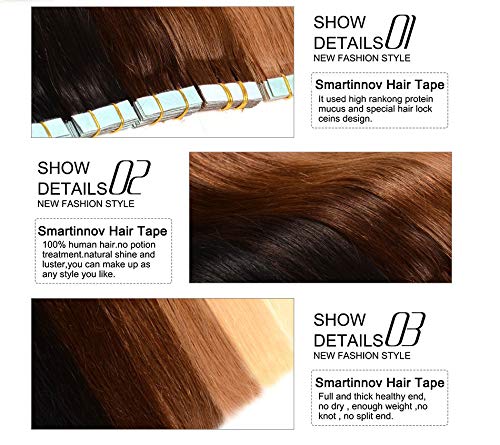 Artículo: Extensiones de Cabello Humano Adhesivas tipo Tape 18″ 20″ 22″ 24″ Máquina Hechas de Cabello Humano con Adhesivos Tape PU Weft de Piel Invisible 20 piezas. Marca: Smartinnov. Longitud y Peso: 18 pulgadas 45cm, 2.0g/pc, 40g por paquete, 20 piezas en total. 20 pulgadas 50cm, 2.5g/pc, 50g por paquete, 20 piezas en total. 22 pulgadas 55cm, 2.5g/pc, 50g por paquete, 20 piezas en total. 24 pulgadas 60cm, 2.5g/pc, 50g por paquete, 20 piezas en total. Colores Oscuros: 1B, 4, 6, 8. Colores Intermedios: 24, 27. Colores Claros: 16, 18, 24, 60, 613. Colores Piano: 4/27, 4/613, 6/613, 12/613, 18/613, 27/613. Color Ombre: T2/613. Calidad del Cabello: 1) Cabello Humano 100% Natural Real utilizado, Sin Sintético, Sin Cabello Animal, Suave, Suave, Brillante, Sedoso. 2) Libre de Enredos y Caídas. Puede durar mucho tiempo con un buen cuidado. 3) Puede Ser Rizado y Alisado. Puede ser teñido a un color más oscuro. 4) Tape Invisible. Extensiones de Cabello Natural Ondulado, Confortable e Invisible en la Cabeza. Tamaño del Tape y Marca del Tape: Tamaño del Tape: 4cm de ancho x 0.8cm de alto. Marca del Tape: Tape Doble Fuerte de Smartinnov utilizado. Sugerencia de Aplicación: Si tienes cabello corto y deseas un efecto de longitud y volumen, compra 4 lotes por favor (80 piezas). Si tienes cabello largo y fino, y deseas más volumen, compra 2 – 3 lotes por favor (40 ~ 60 piezas). Si deseas un efecto de luces o más volumen, compra 1 lote por favor (20 piezas).