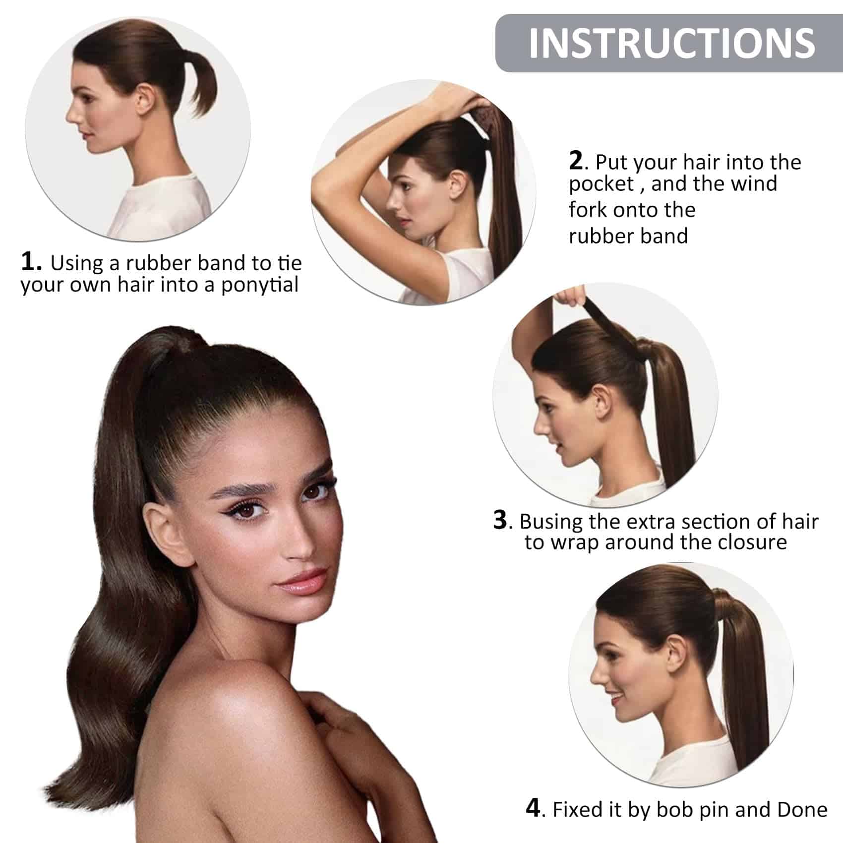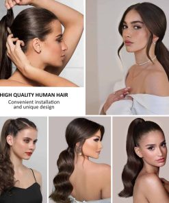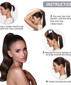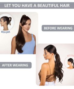 4. Fácil pelo de cola de caballo Cola de caballo envolvente, fácil de poner y quitar por ti mismo, sin dañar tu propio cabello. Es seguro y cómodo para usar todo el día. Puede hacer diferentes estilos, como cola de caballo alta, cola de caballo baja, cola de caballo media alta, medio recogido.
