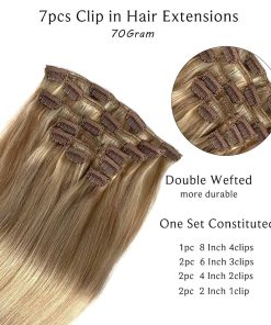 2. Especificación de Extensiones de Cabello Humano Labetti – Las extensiones de cabello clip en cabello humano son doble trama bien elaborada, grosor de arriba a abajo. 7 piezas 70G (2.45 oz) / Paquete con 16 clips de acero inoxidable cosidos. Diseñado para niñas, mujeres novias para agregar volumen y longitud o reflejos a su propio cabello. Todos los colores de las extensiones de cabello son exactamente como se muestran en las imágenes, las diferencias de color muy ligeras debido a la iluminación, monitores y ajustes son normales.
