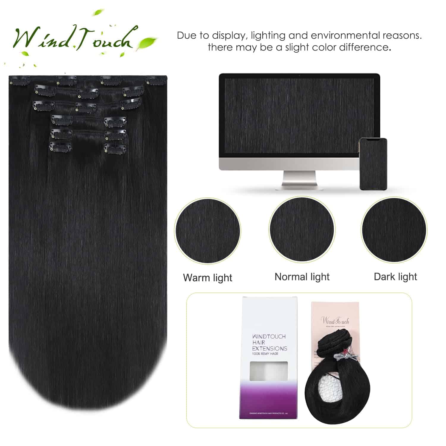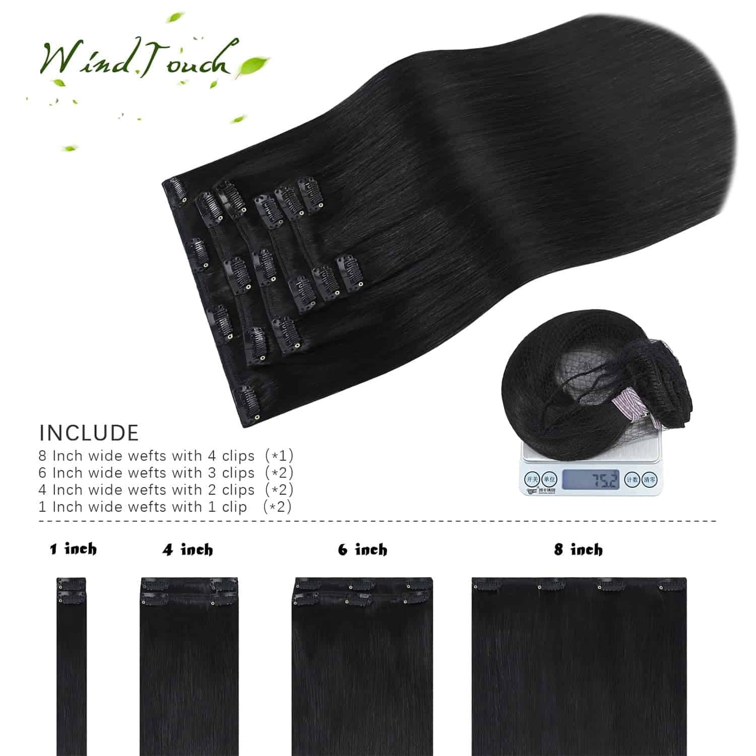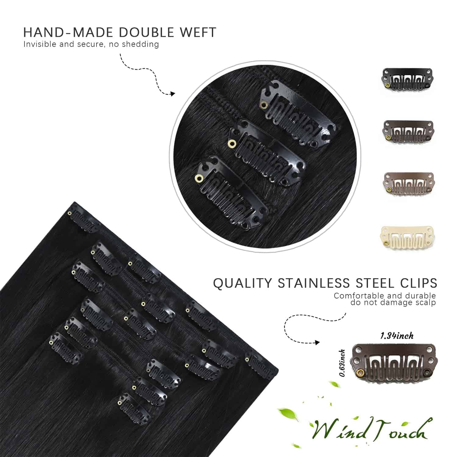Extensiones de Cabello Clip en Cabello Humano Negro Natural