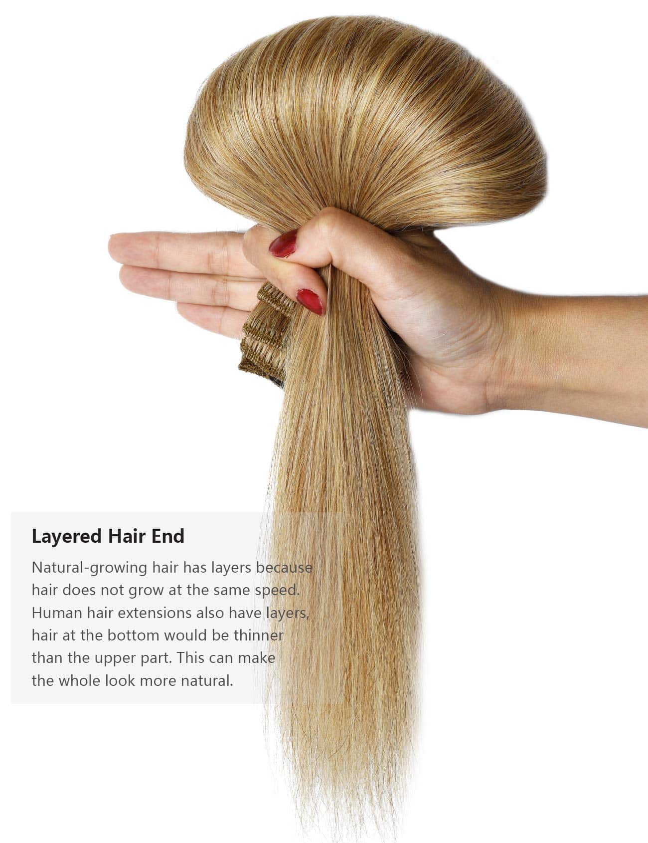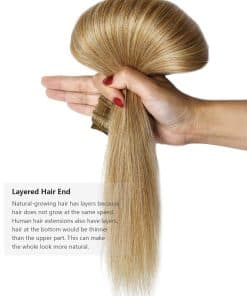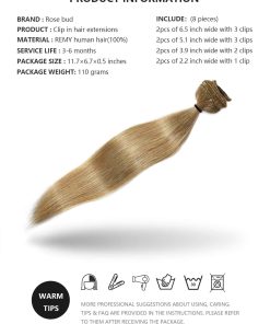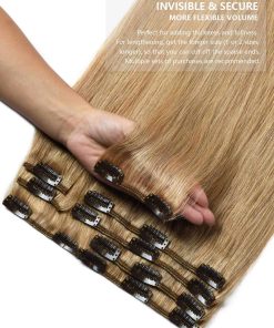 Extensiones de cabello clip en forma de brotes de rosa de cabello REMY humano de 20 pulgadas en rubio oscuro. Hechas con 100% de cabello humano REMY, permiten un estilo libre con herramientas térmicas. Pueden rizarse o alisarse según el gusto del usuario. Estas extensiones de cabello no tienen ningún olor químico y ofrecen un volumen flexible de 60 g en un total de 10 pulgadas. Son perfectas para agregar grosor y plenitud al cabello. Los clips invisibles aseguran una fácil aplicación y una apariencia natural al mezclarse con el cabello natural. Además, estas extensiones de cabello humano no se enredan fácilmente y son adecuadas para un uso diario. Ideales para ocasiones especiales como bodas, citas, fiestas y vacaciones. Nota: Puede haber ligeras variaciones de color debido a las diferencias en los monitores y pantallas de los dispositivos móviles.