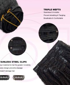 Las extensiones de cabello clip en pelo humano de OiMiGO son la solución perfecta para cambiar tu estilo de cabello de forma fácil y segura. Hechas de cabello humano 100% remy brasileño de calidad, estas extensiones son suaves, elásticas y fáciles de cuidar. Puedes alisarlas, rizarlas, teñirlas o lavarlas, y mantenerlas en óptimas condiciones durante mucho tiempo. El diseño de triple trama y color negro natural hace que las extensiones se vean más densas y naturales, mientras que los clips U de color similar se mezclan perfectamente con tu cabello para un aspecto discreto y realista.