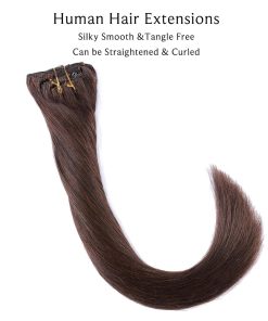 1. Extensiones de Cabello Clip– Extensiones de cabello humano reales clip en extensiones hechas con 100% cabello humano real recogido de jóvenes saludables, brillosas, suaves, ordenadas y naturalmente lisas sin cortar como las puntas de tu propio cabello natural, fáciles de mezclar naturalmente con tu propio cabello, invisibles y duraderas, se pueden remodelar, lavar, fortalecer, rizar, teñir, ondular, etc. Si deseas rizarlo o alisarlo, por favor controla la temperatura por debajo de 180.
