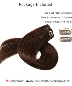 2. Especificación de las Extensiones de Cabello Humano Ubetta– Extensiones de cabello real clip in bien diseñadas en doble trama, grosor de arriba a abajo. 7 piezas 70G (2.45oz) / Paquete con 16 clips de acero inoxidable cosidos. Diseñado para chicas, mujeres novias para agregar volumen, longitud o reflejos a su propio cabello. Todos los colores de las extensiones de cabello son exactamente iguales a las imágenes mostradas, muy ligeras diferencias de color debido a la iluminación, monitores y configuración es normal.
