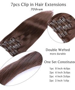 4. Cómodo y Seguro de Usar– Nuestras extensiones de cabello clip en cabello humano tienen clips de acero inoxidable cosidos de forma estable, cubiertos con una capa de goma suave para proteger cuidadosamente tu cuero cabelludo y cabello, fácil de aplicar y quitar las extensiones de cabello clip por ti mismo para cambiar el peinado para diferentes ocasiones. (Bodas, Conciertos, Fiestas de Maquillaje, Citas, Baile de Graduación, etc.).