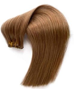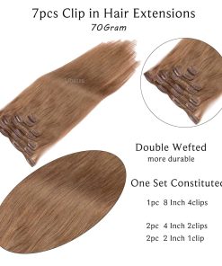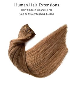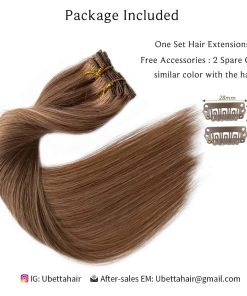 Extensiones de Cabello Clip in Pelo Humano Liso Sedoso Remy Extensiones de Cabello Real Miel Dorado 7 Piezas 70G Doble Trama Clip en Extensiones de Cabello para Mujeres. Las extensiones de cabello humano Ubetta están hechas con cabello humano real recolectado de chicas jóvenes y saludables, el cual es esponjoso, suave, ordenado y naturalmente liso sin cortes como las puntas de tu propio cabello natural, fácil de mezclar naturalmente con tu propio cabello, invisible y duradero, se puede remodelar, lavar, fortalecer, rizar, teñir, hacer permanentes, etc. Si deseas rizar o alisar el cabello por ti misma, por favor controla la temperatura por debajo de 180. La especificación de las Extensiones de Cabello Humano Ubetta incluye doble trama bien hechas, grosor de arriba a abajo. 7 piezas 70G (2.45oz) por paquete con 16 clips de acero inoxidable cosidos. Diseñadas para chicas, mujeres novias para agregar volumen y longitud o destellos a su propio cabello. Todos los colores de las extensiones de cabello son exactos como se muestran en las imágenes, ligeras diferencias de color debido a la iluminación, monitores y configuración son normales. Las extensiones de Cabello de 70G 7 PCS Doble Trama – Por lo general, puedes elegir la longitud según la de tu propio cabello para asegurarte de que las extensiones de cabello combinen naturalmente con la longitud de tu propio cabello y evites que se vean escasas al final. Se recomienda 2 paquetes para clientas con tipo de cabello fino para agregar longitud y volumen o 3 paquetes si prefieres el cabello grueso. Sobre el color, te sugerimos elegir el color a través de tus propias raíces del cabello. Cómodo y Seguro de Usar – Nuestras extensiones de cabello clip en pelo humano tienen clips de acero inoxidable cosidos de forma estable, cubiertos con una capa de goma suave para proteger cuidadosamente tu cuero cabelludo y cabello, fácil de aplicar y quitar las extensiones de clip en el cabello por ti misma para cambiar el peinado para diferentes ocasiones (bodas, conciertos, fiestas de maquillaje, citas, bailes de graduación, etc.). Consejos Cálidos – En Stock en EE.UU. Si tienes algún problema cuando recibes los productos, contáctanos libremente por correo electrónico. Todas las extensiones de cabello clip en humano han sido teñidas a diferentes colores durante el proceso, si deseas volver a teñir, el color claro se puede teñir a más oscuro, pero el más oscuro no se puede teñir a claro.