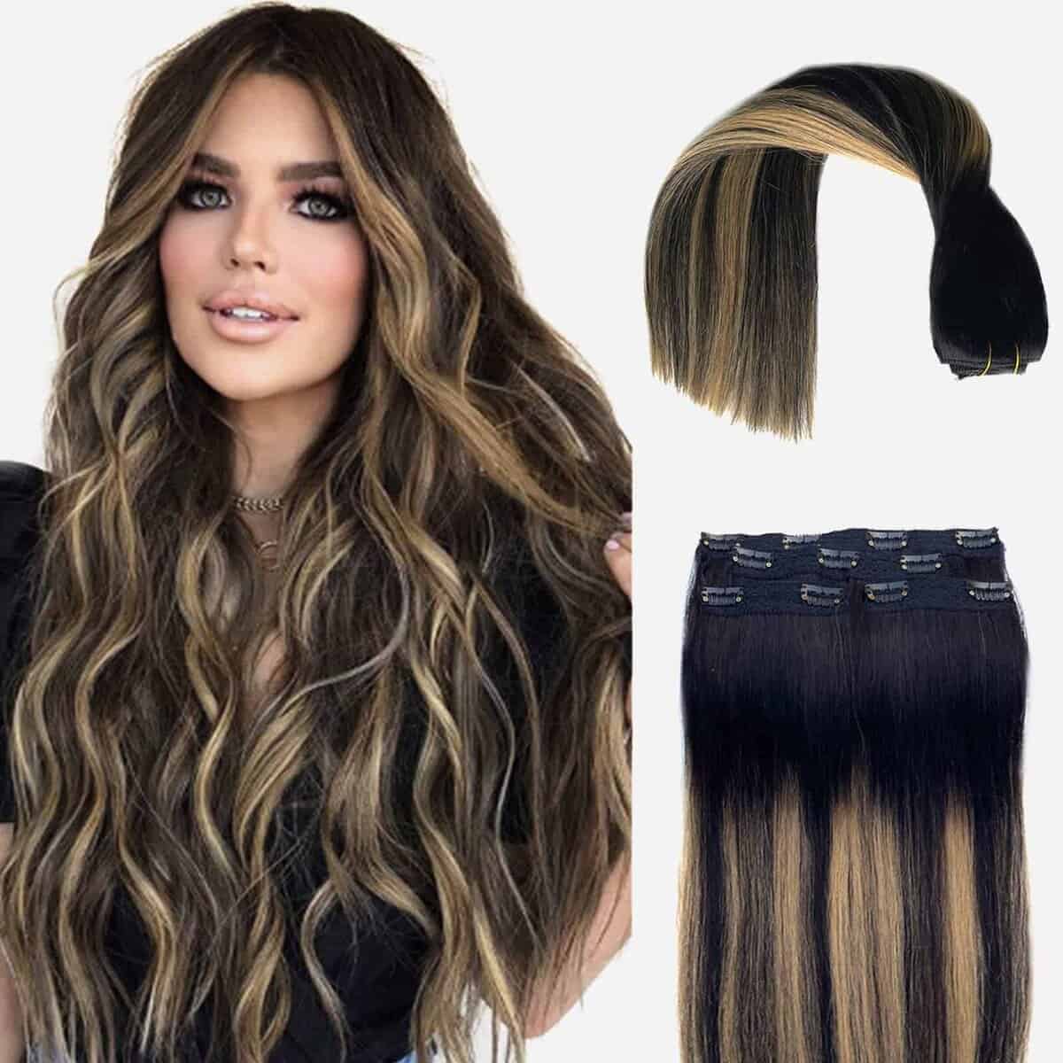 Extensiones de Cabello Clip ins 4Pcs 100g sin Costura de