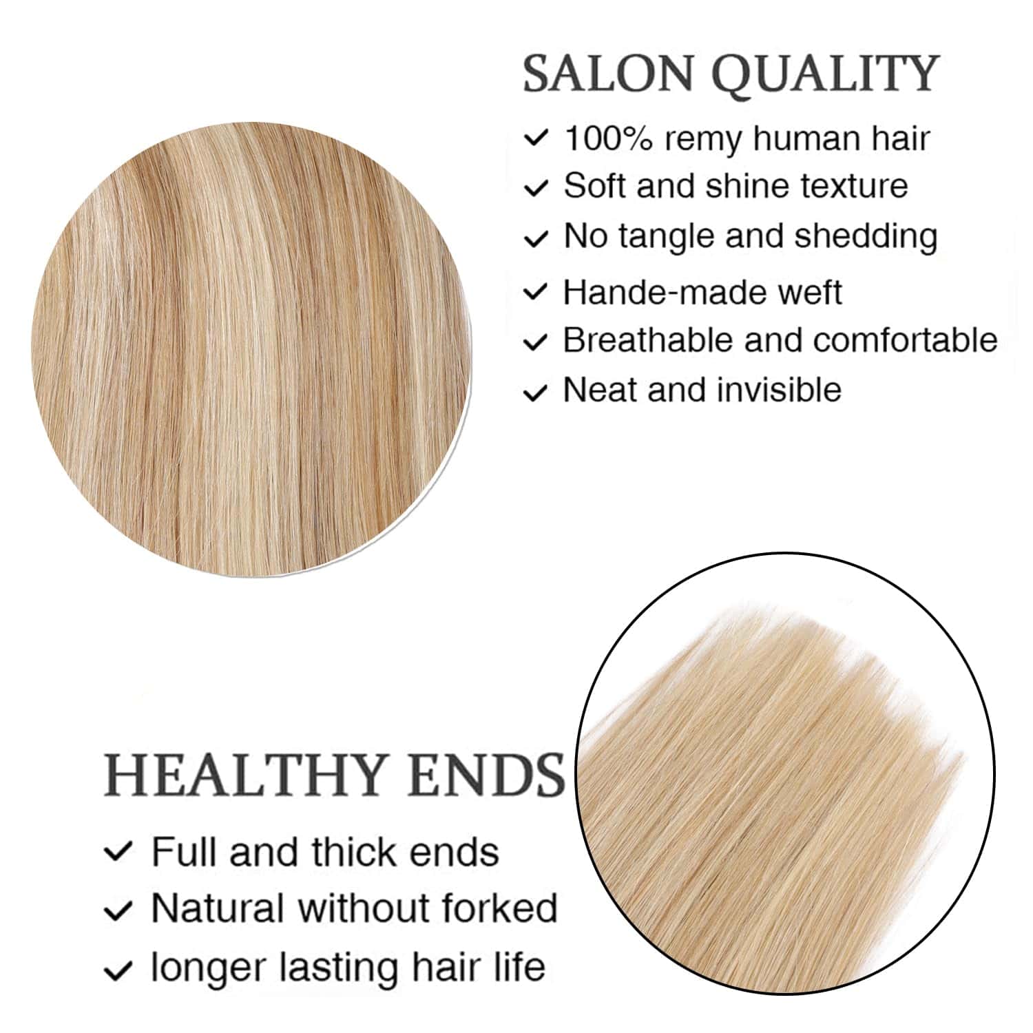 1. Calidad del Cabello: Las extensiones de cabello clip ORIGEN están hechas de cabello humano Remy, suave y sedoso como en un salón de belleza profesional. El cabello es suave y se asemeja a tu cabello natural, sin enredos ni caídas. Los extremos son gruesos y saludables. Estas extensiones se pueden lavar, teñir y peinar. En caso de que los clips se rompan durante el uso, ofrecemos clips de reemplazo gratuitos de por vida. Además, si faltan partes, podemos ayudarte a reemplazarlas. 2. Especificaciones del Cabello: De 12 a 14 pulgadas con un peso de 80 gramos, y de 16 a 22 pulgadas con un peso de 120 gramos. El cabello es increíblemente suave y los extremos son gruesos y libres de puntas abiertas, dándote un aspecto lujoso y liso. Las extensiones están hechas a mano y cuentan con una doble capa de trama capilar, asegurando que el cabello no se caiga. Un pack de nuestras extensiones de cabello suele ser suficiente para una colocación de cabeza completa. Sin embargo, si tienes el cabello fino, te recomendamos usar dos packs para un efecto más completo. 3. Amigable para Principiantes: Nuestros clips son discretos y ligeros, y están cosidos a las extensiones para proporcionar estabilidad. La parte trasera de los clips tiene un material de silicona de goma suave que ayuda a reducir cualquier tirón en tu cabello, ofreciendo una protección adicional para tu cuero cabelludo y cabello natural. Ponerse o quitarse estas extensiones es muy fácil, tomando solo 5 minutos o menos. 4. Combinación de Color: Las extensiones de cabello clip ORIGEN de cabello humano real contienen una variedad de efectos de ombré o de destaque, dándote múltiples opciones para crear diferentes peinados. Debido a diferentes monitores, podría haber una ligera diferencia de color entre las imágenes y el cabello real. Podemos igualar el color por ti antes de hacer un pedido. 5. Consejos: Por favor, lava tus extensiones con productos de cuidado capilar humectantes, y luego péinalas suavemente para prevenir la caída del cabello. Coloca tus extensiones cuidadosamente en agua tibia y aplica un poco de acondicionador por todo una vez a la semana. Déjalo actuar durante unos 20 minutos antes de enjuagar y permitir que se seque de forma natural con un secador de cabello. Con el cuidado adecuado, estas extensiones de cabello pueden durar de 3 a 5 meses.