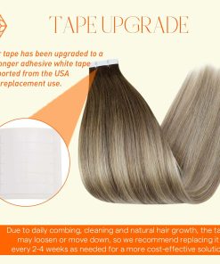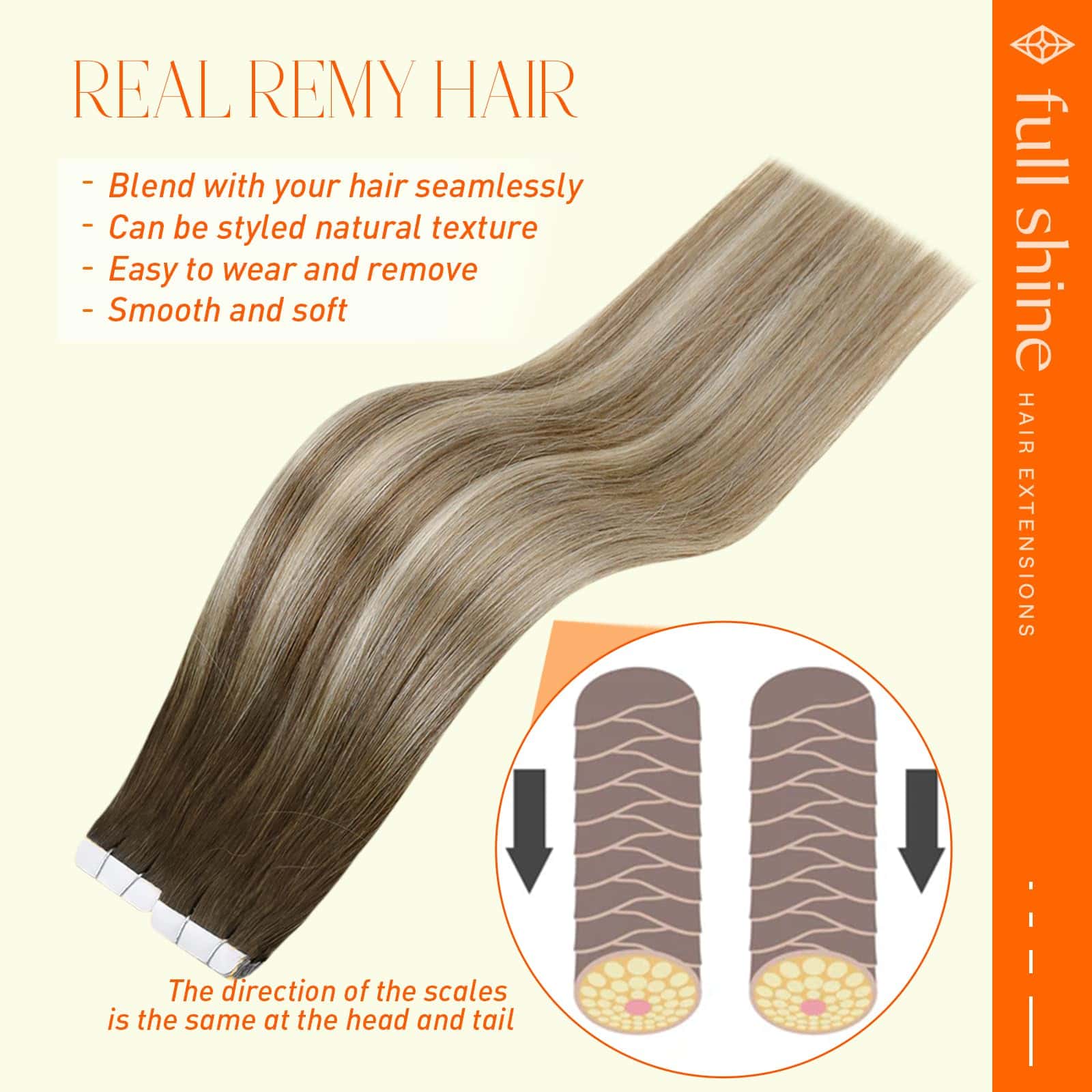 Extensiones de Cabello con Adhesivo de Cinta de Pelo Humano Full Shine: Este set de 20 piezas de extensiones de cabello humano con adhesivo de cinta de Full Shine es ideal para obtener un cabello más voluminoso y con un toque de color. Con una longitud de 16 pulgadas y un peso de 50g, estas extensiones ofrecen resultados naturales y discretos. El color 3/8/22 combina marrón oscuro con marrón ceniza y reflejos rubios, creando un aspecto armonioso y elegante. Las extensiones son de doble cara, invisibles y reemplazables, lo que garantiza una fijación segura y cómoda. Con un cuidado adecuado, estas extensiones pueden durar semanas sin necesidad de un mantenimiento constante. Aprovecha la versatilidad de las extensiones de cinta para crear múltiples estilos y looks que se adapten a tu personalidad y gusto. Eleva tu estilo con las extensiones de cabello humano de Full Shine y experimenta la diferencia que pueden hacer en tu apariencia.