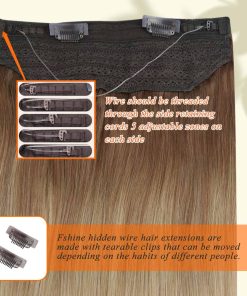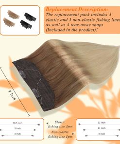 Las extensiones de cabello con cable de pescar Fshine adoptan encaje transpirable hecho a mano, y seis tamaños de líneas de pesca de repuesto pueden ajustar fácilmente la longitud de la cortina para satisfacer las necesidades de circunferencia de la cabeza de la mayoría de las personas. La instalación es fácil, ya que no se requiere pegamento, cinta ni herramientas complicadas.