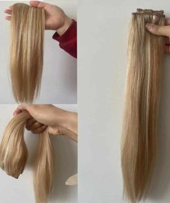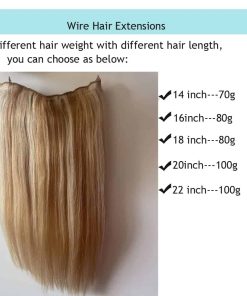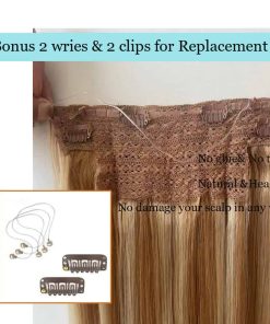 Más información detallada sobre las extensiones de cabello con cable invisible: Estas extensiones de cabello con cable transparente están diseñadas para ser más cómodas, suaves, naturales y ligeras que las extensiones de cabello tradicionales. Hechas de cabello humano 100% de alta calidad, puedes estilizarlas y teñirlas según tus preferencias. La anchura de las tramas está hecha según la circunferencia de la cabeza para un ajuste perfecto. La instalación es rápida y sencilla, solo toma alrededor de 3 minutos ponerlas o quitarlas. Además, las extensiones tienen un cable invisible y ajustable, junto con clips para mayor seguridad y comodidad. El cabello grueso con puntas densas garantiza que no se enrede ni se caiga. Disfruta de un aspecto natural y sin esfuerzo con estas extensiones de cabello de alta calidad.