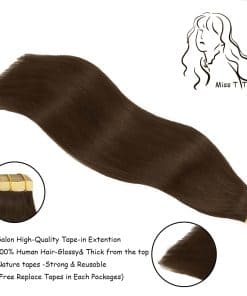 Extensiones de cabello humano remy al 100% de calidad de salón, sin enredos ni caídas, suave y sedoso como tu propio cabello natural. Nuestras extensiones con cinta adhesiva de piel pueden durar de 2 a 3 meses con el cuidado adecuado. Ofrecemos los colores más populares, como balayage y colores sólidos. Dependiendo de la condición de tu propio cabello, puedes elegir las extensiones con cinta adhesiva ideales. Las extensiones con cinta adhesiva se pueden lavar, rizar, ondular, etc. Para mantenerlas en buen estado, te sugerimos mantener la temperatura por debajo de 180 C durante el peinado, mejor con la ayuda de profesionales. Al aplicar cinta adhesiva sin residuos de primera calidad que es transpirable, reutilizable, fuerte en adhesión y fácil de usar, hemos garantizado una experiencia cómoda al usar nuestros productos. Además, ofreceremos cintas de repuesto para que las puedas reemplazar con la guía de los videos si es necesario. El tamaño de la cinta de soporte utilizada por Miss Trose Trover es de 1.5 pulgadas por cada pieza de cabello. Hay 20 piezas de cabello por paquete, y el peso de un paquete es de 50g. En cuanto a la longitud, puedes elegir entre 14 y 22 pulgadas. Se sugiere que si solo quieres que tu cabello se vea más largo, puedes pedir 1-2 paquetes, y si deseas aumentar el grosor y la longitud del cabello al mismo tiempo, será mejor que pidas 3-4 paquetes. Si tienes alguna pregunta sobre nuestros productos, contáctanos y te responderemos lo antes posible. Para instalación y desmontaje, limpieza y mantenimiento, puedes consultar la página del producto. El color real puede variar dependiendo del monitor o la luz. Garantía de devolución, ofrecemos servicio de devolución o intercambio.