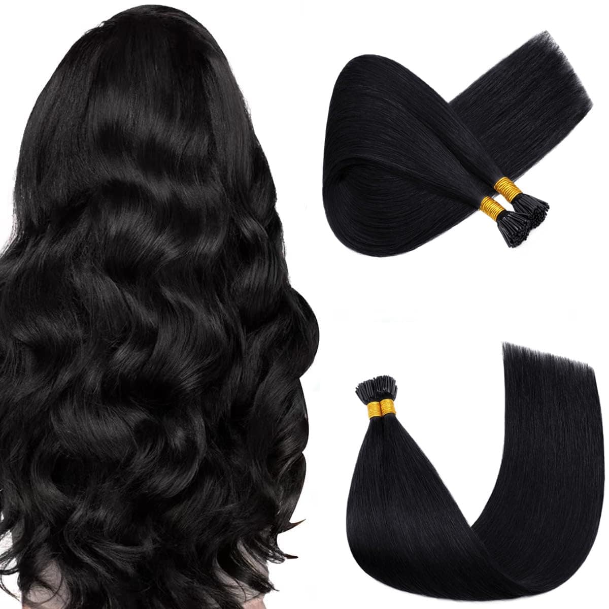 Extensiones de alta calidad hechas de cabello humano real Remy con una longitud de 22 pulgadas en un elegante color negro jet. Estas extensiones de cabello con punta I son ideales para aquellos que desean extensiones a largo plazo que se mezclen de manera natural con su propio cabello. Cada paquete contiene 100 hilos de 0.5g cada uno, lo que permite una fácil aplicación y un aspecto natural.