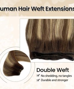 2. Doble Trama Extensiones de Cabello Cosidas a Mano Las extensiones de cabello cosidas a mano están hechas de cabello humano crudo brasileño, utilizan un proceso de doble trama fuerte contra la caída, dos tramas cosidas juntas para hacer que la costura del cabello sea más compacta, las extensiones de cabello remy no son fáciles de caerse, más duraderas. Debido a esta característica del proceso, existe cabello corto en las raíces de las extensiones de cabello, es normal y no se puede evitar.