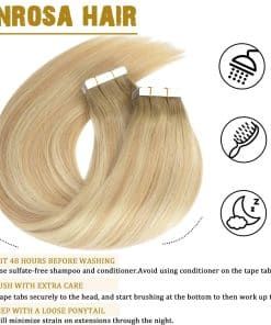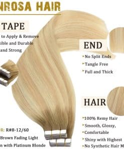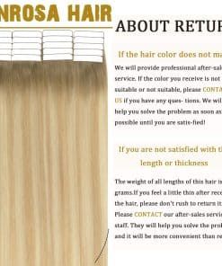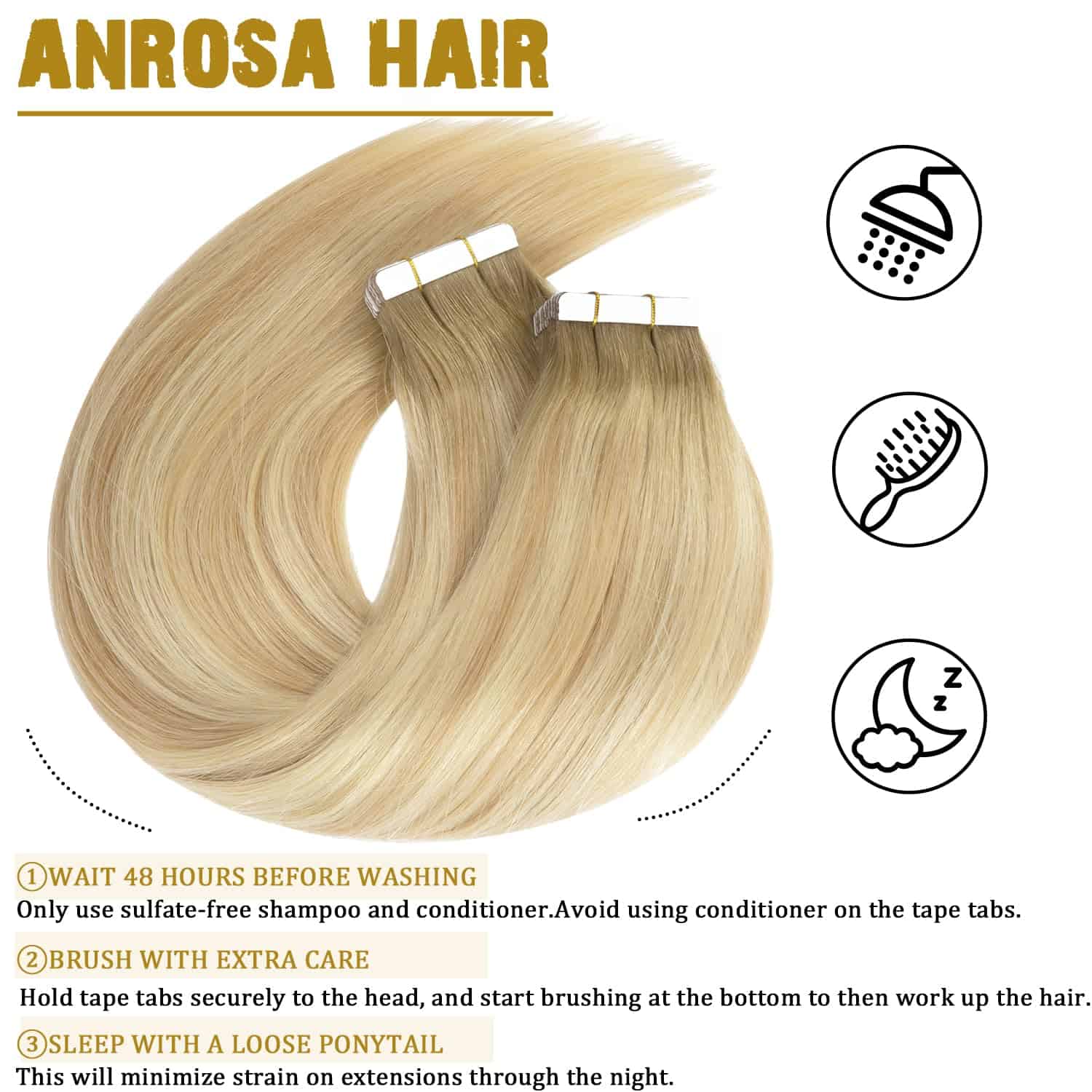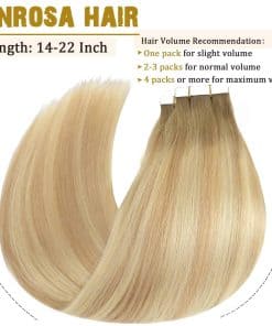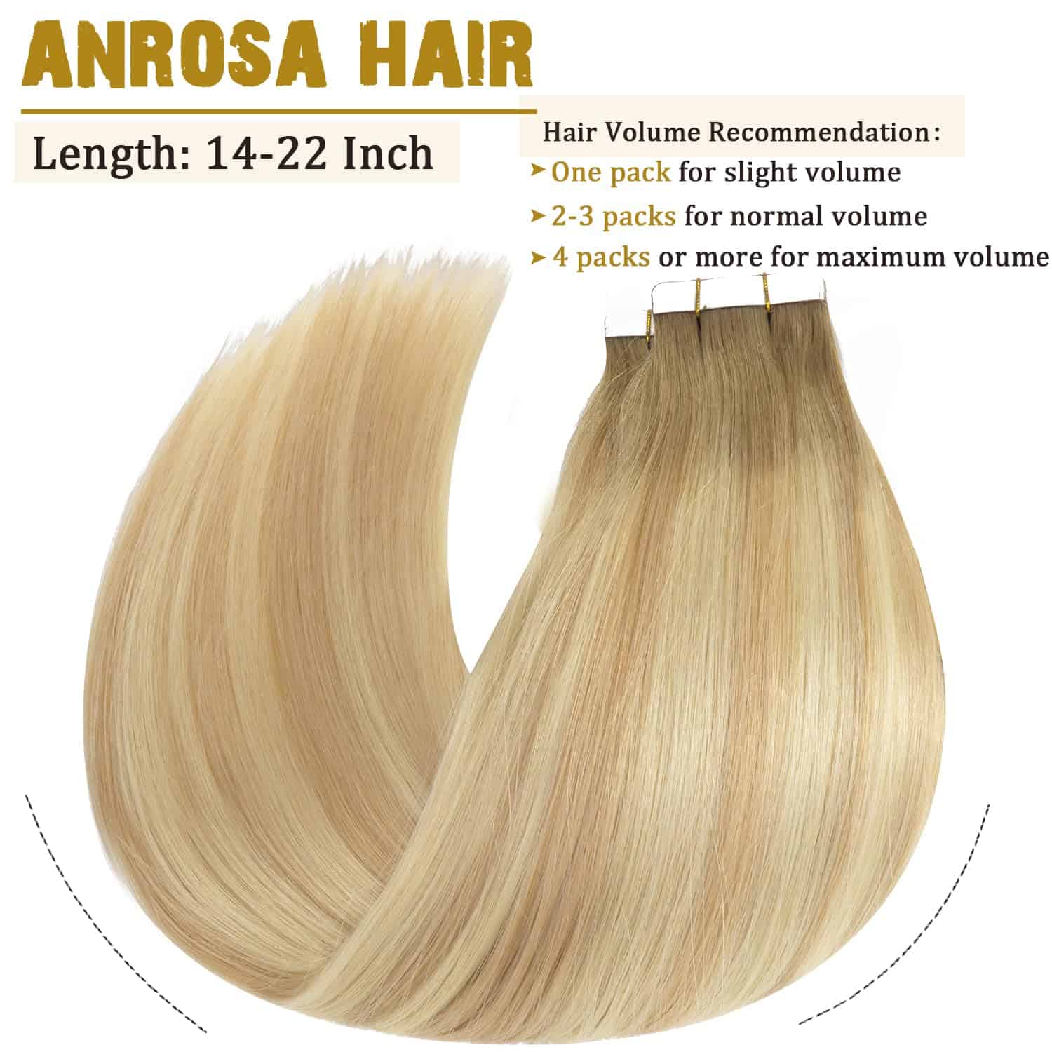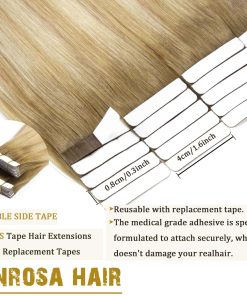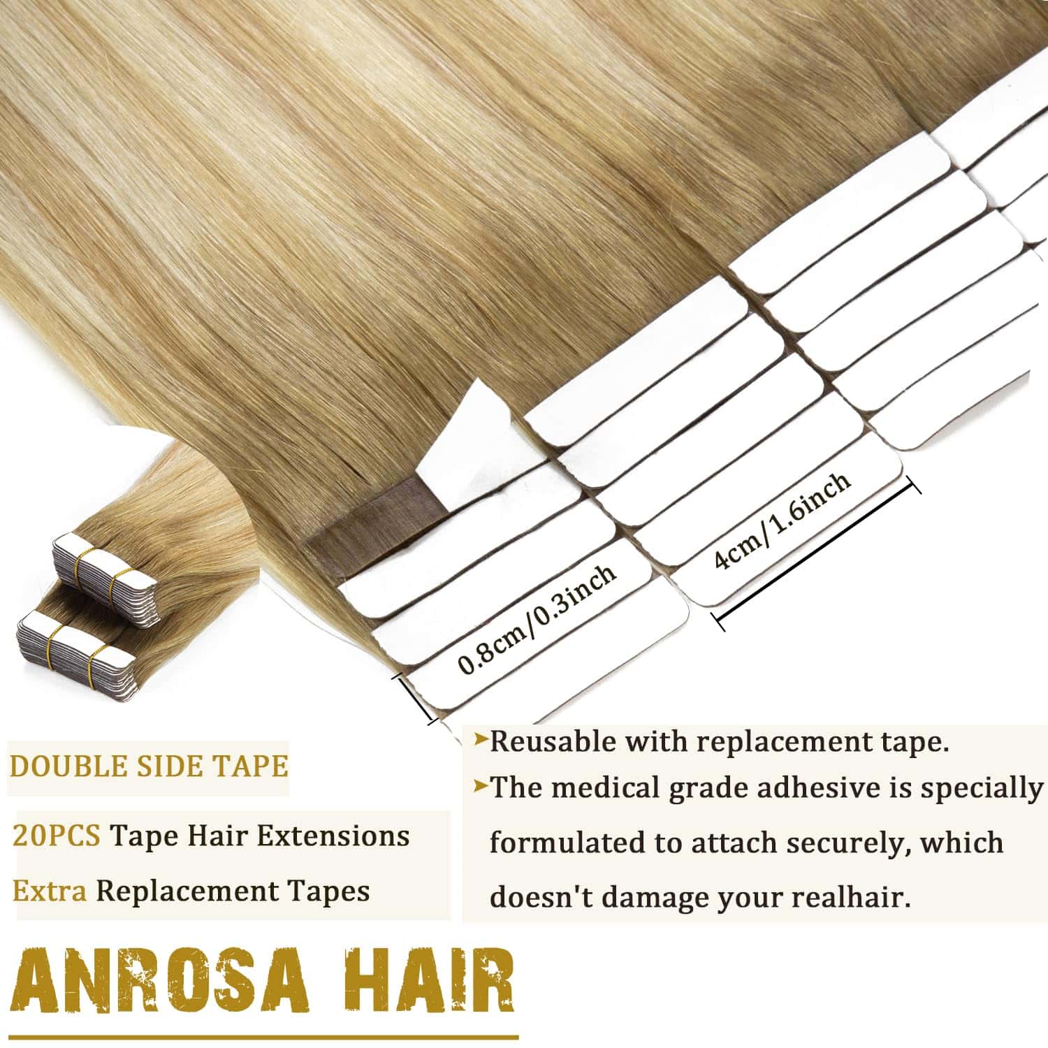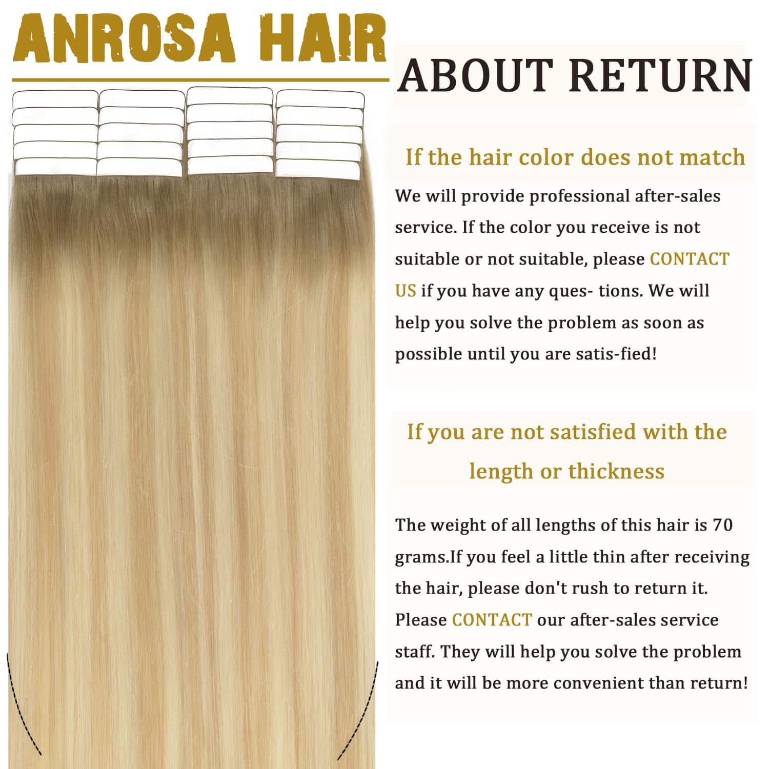 Anrosa Tape in Hair Extensions está hecha con cabello humano remi de la más alta calidad, asegurando un mínimo de caída y ningún enredo. Puede alisar, rizar, cortar y peinar el cabello naturalmente. Con Longitud (14-22) y Grosor para una apariencia natural y frondosa que se mezcla perfectamente con su cabello natural. Las extensiones de cinta son invisibles y sin costuras, livianas y fáciles de aplicar, disponibles para combinar con clips y cintas dobles. Puede reutilizar, rizar y lavar las extensiones de cabello, al igual que su propio cabello, pero evite usar temperaturas demasiado altas. Anrosa ofrece el mejor producto y servicio de cabello a nuestros clientes, garantizando la máxima calidad estándar en todos nuestros productos.