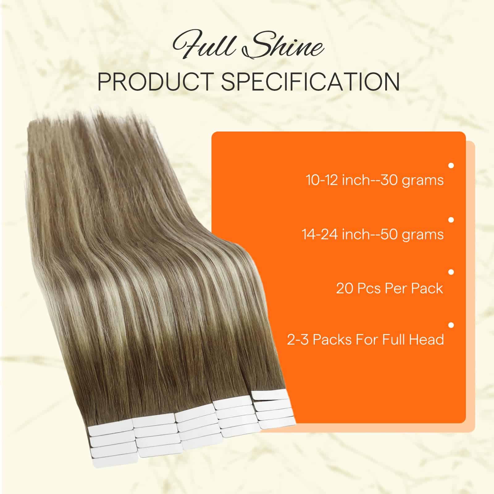 Extensiones de Cabello de Cinta Full Shine de 16 Pulgadas:
