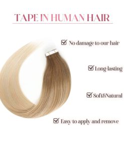 2. Cintas invisibles y cómodas Con las cintas fuertes, las extensiones de cinta están aseguradas en tu cabello de forma segura y no se caerán. Las cintas también se pueden quitar fácilmente con removedor o aceite.