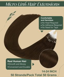 Ugeat Extensiones de Cabello de Micro-Loop Marrón Chocolate para Mujeres – ¡Obtenga el cabello largo que siempre ha deseado con las extensiones de cabello de micro link Ugeat en un hermoso tono de marrón chocolate! Nuestras extensiones de micro eslabón están hechas de cabello humano Remy de alta calidad, lo que garantiza un brillo natural y suavidad sin enredos. Gracias a su construcción eco-consciente, nuestras extensiones de micro beads se mezclarán perfectamente con su cabello natural mientras minimizan el impacto ambiental.