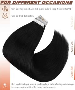 3. Desbloquea tu creatividad para el estilismo con Sunny Hair: Todas las extensiones de cabello en cinta están hechas de cabello humano real, pueden lograr suavidad, alisado; rizado y teñido a color oscuro; Es la elección perfecta para el uso diario, playa, fiesta, boda; graduaciones o una noche de cita romántica; Todas las imágenes son tomadas por nosotros bajo luz natural, debido a la diferencia en la resolución de la pantalla o el equipo, puede haber una ligera diferencia de color.