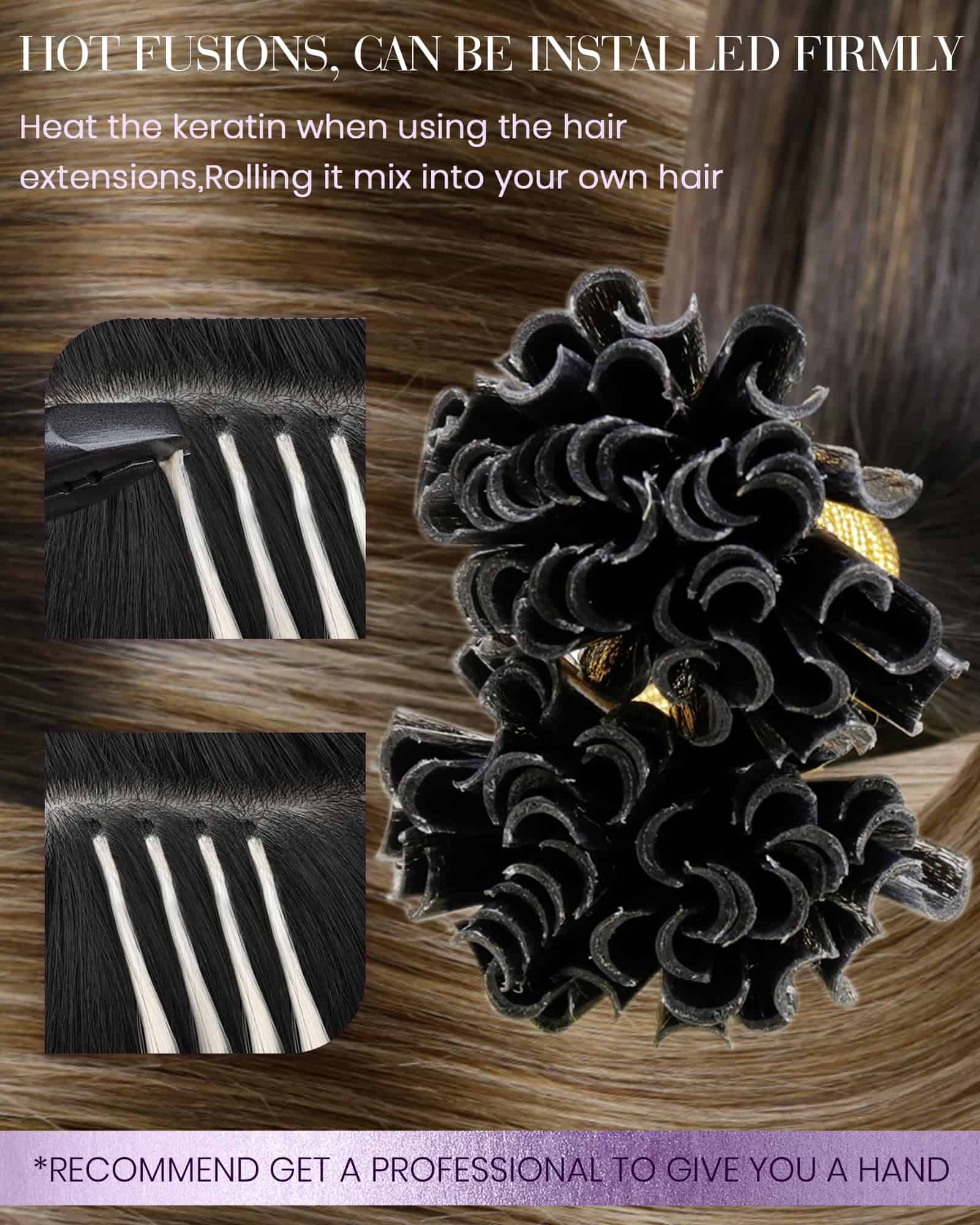4. Ventajas del Método de Uso: Instalar a 1.5-2 pulgadas de distancia del cuero cabelludo. El método de fijación Utip asegura una mezcla perfecta entre el cabello natural y las extensiones de cabello, creando un aspecto natural e indetectable.