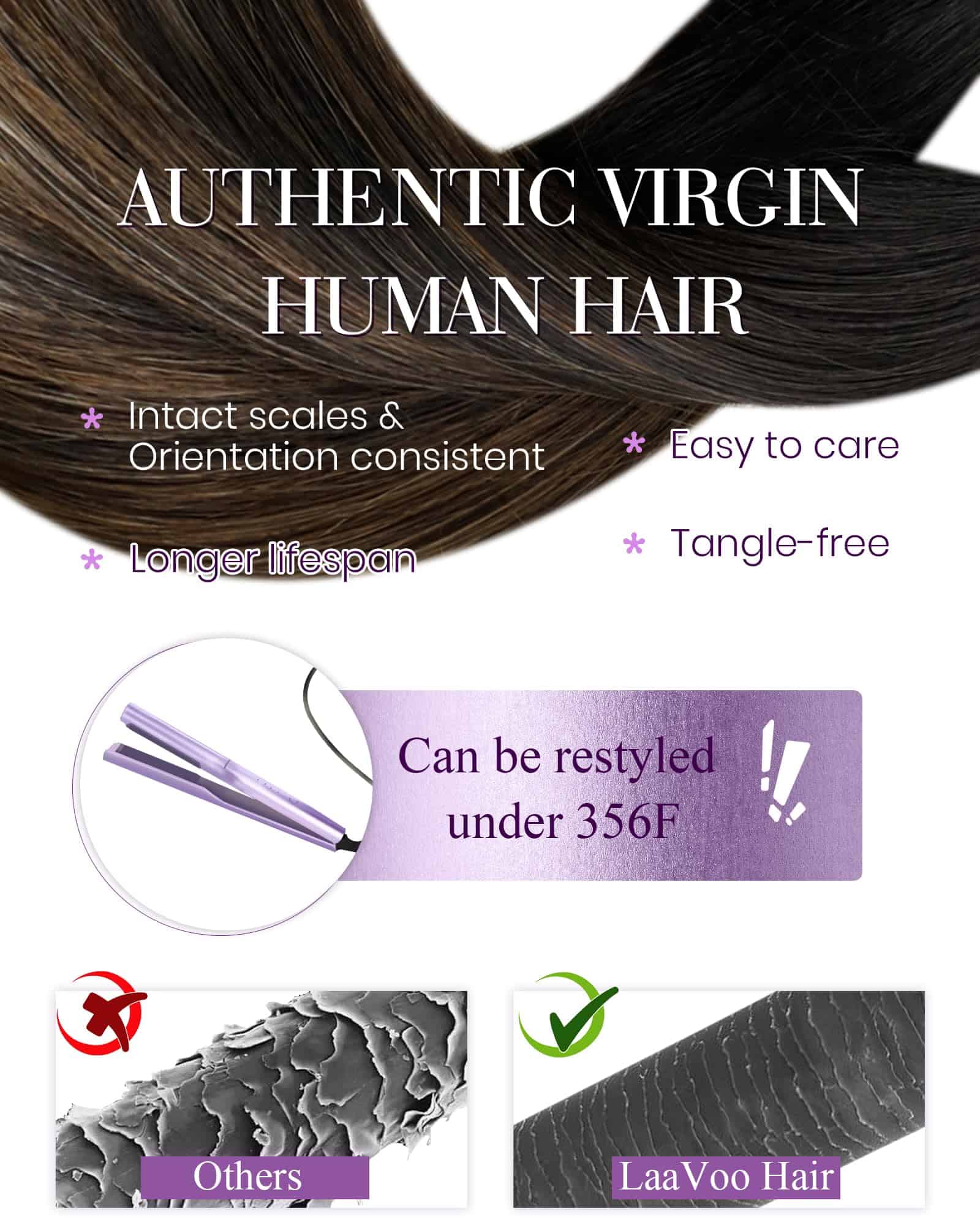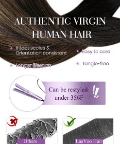 1. Cabello Real; Suave y Saludable: Las Extensiones de Cabello en Forma de U de LaaVoo están hechas de cabello humano puro real que se mezcla con tu propio cabello. Son resistentes al calor y duraderas, más suaves y brillantes, dando como resultado un cabello hermoso y saludable.