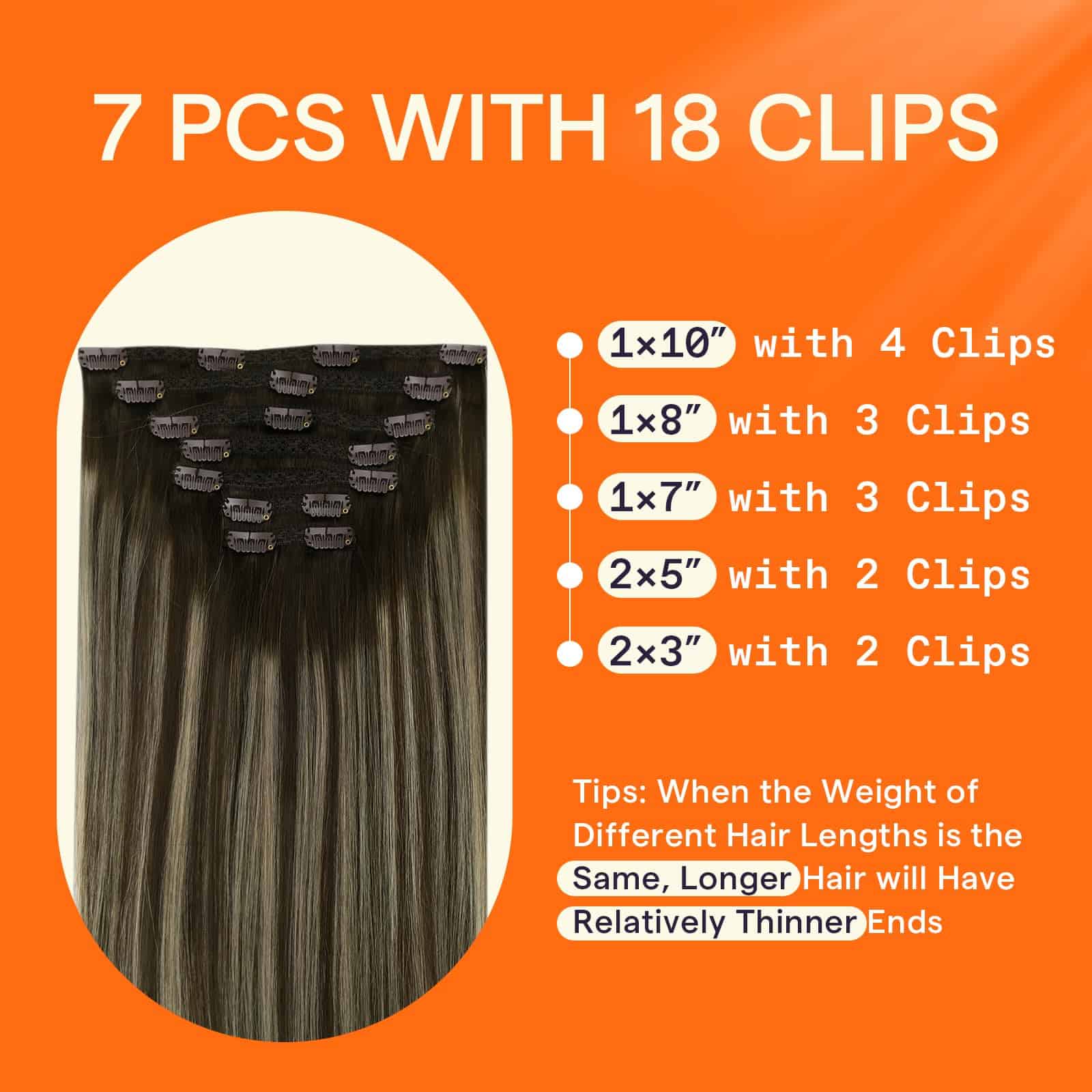 3. Varias Opciones: Moreno oscuro balayage platino rubio, 12 pulgadas, 95 g; nuestras extensiones de cabello humano real con clip satisfacen diversas necesidades capilares; para un aspecto completo, usa dos paquetes o combínalo con nuestras extensiones de cabello con 3 piezas de clip; el set completo pesa de 150 a 200 gramos, lo que facilita lograr el estilo deseado.