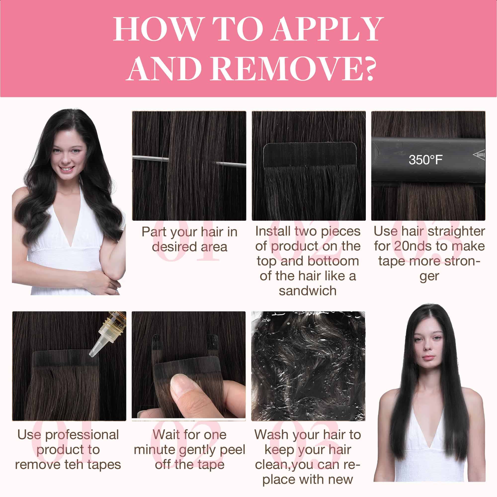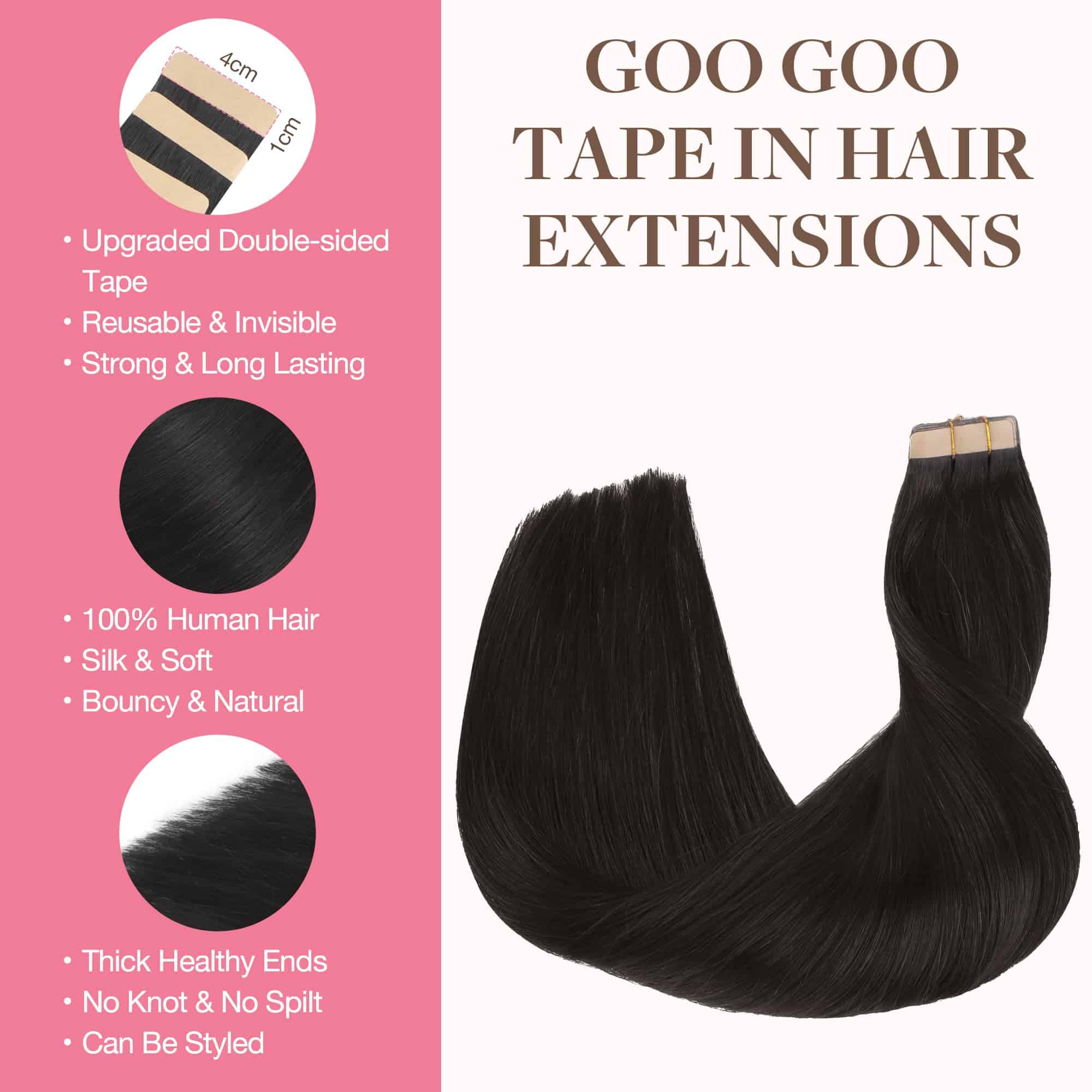 Extensiones de Cabello GOO GOO de Cinta de Pelo Humano,