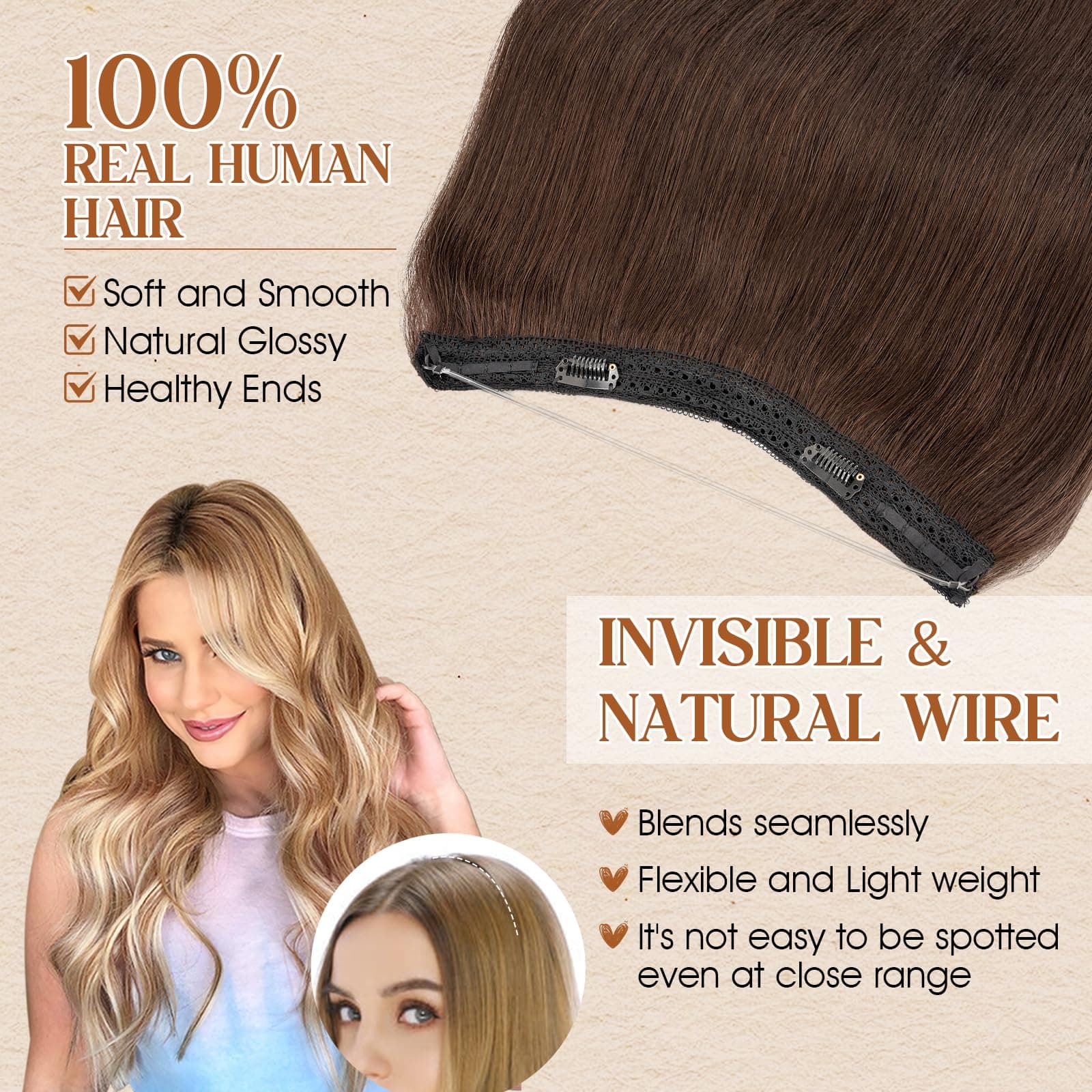 Extensiones de Cabello Halo Benehair de Cabello Real Humano