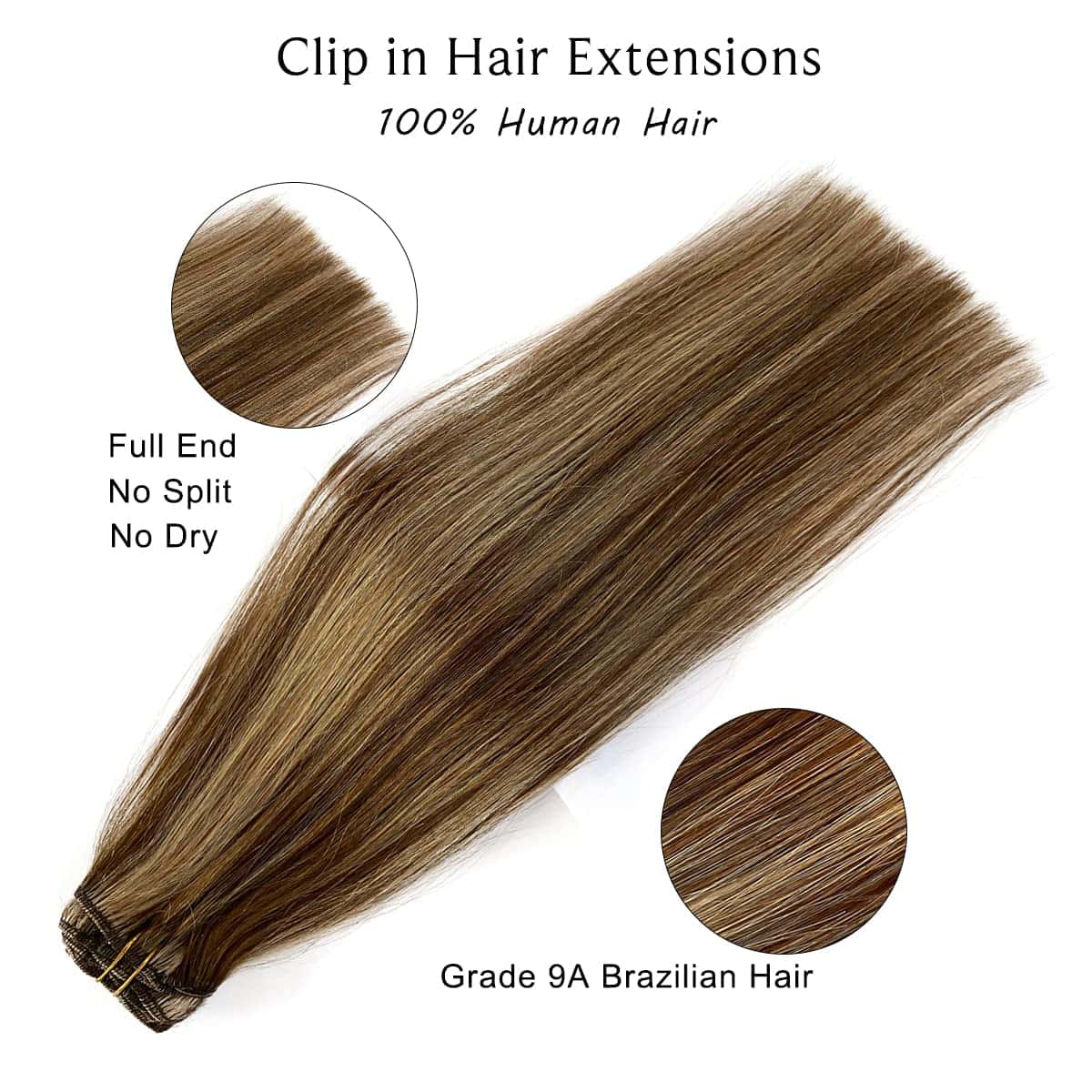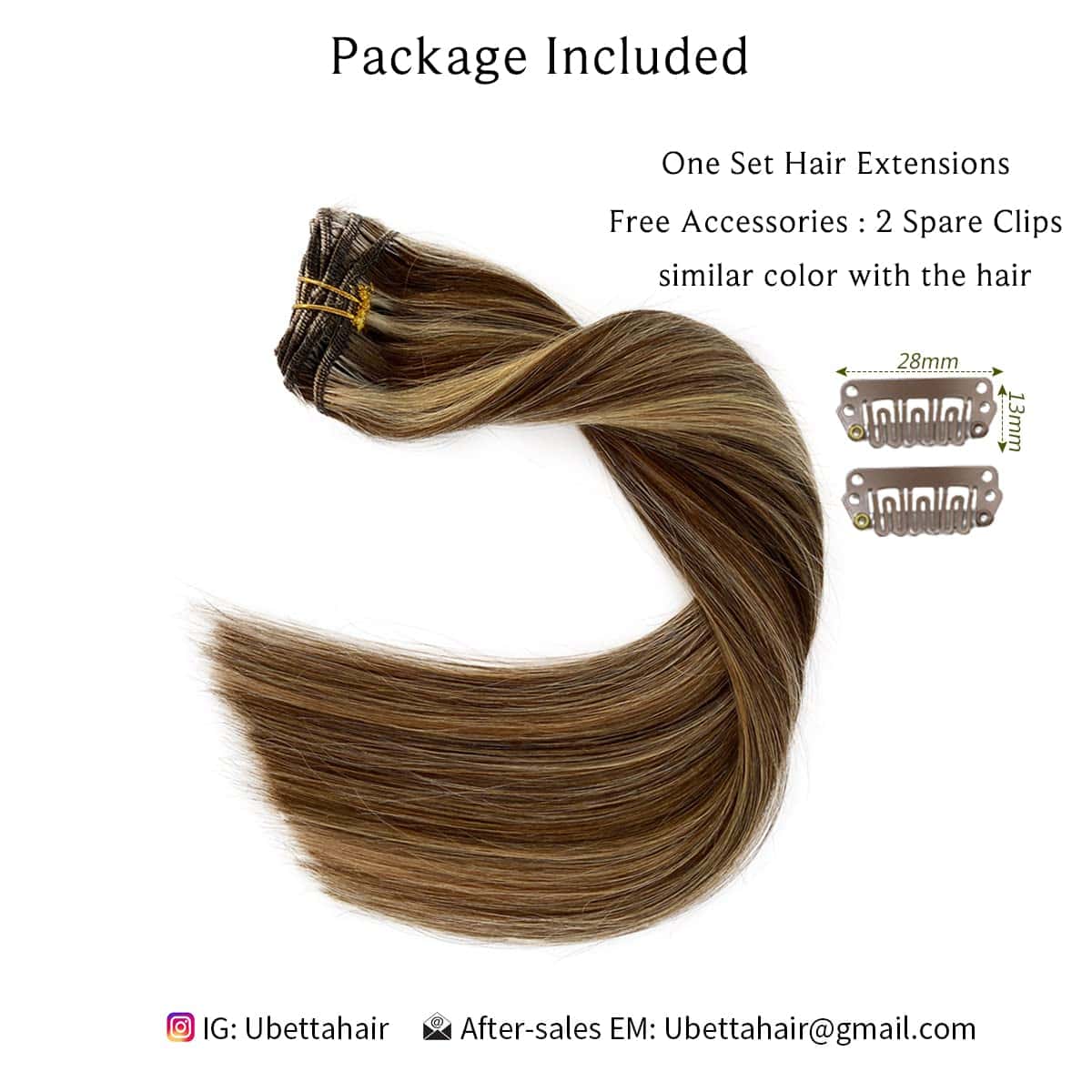 1. Clip en Extensiones de Cabello – Extensión de cabello real de clip en humanos Ubetta hecha por cabello humano 100% real recolectado de chicas jóvenes y saludables, suave, compacto, limpio y naturalmente recto sin cortar como las puntas de tu cabello natural, fácil de mezclar naturalmente con tu propio cabello, invisible y duradero, se puede reestilizar, lavar, fortalecer, rizar, teñir, hacer permanente, etc. Si deseas rizar o alisar por ti mismo, por favor, controla la temperatura bajo 180.