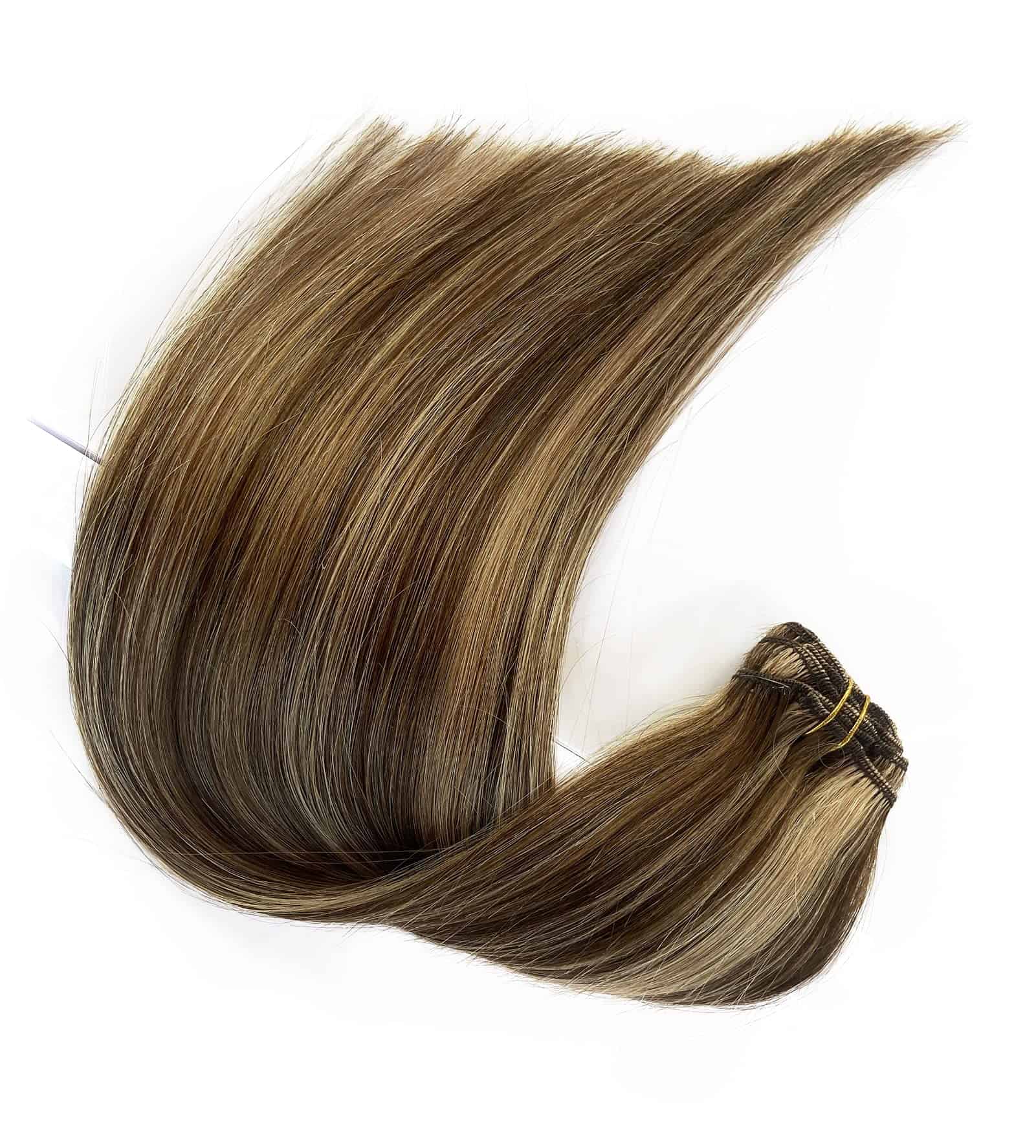 3. Extensiones de Cabello de Doble Trama 70G 7 PCS – Por lo general, puedes elegir la longitud según la longitud de tu propio cabello para asegurarte de que las extensiones de cabello se ajusten naturalmente a la longitud de tu propio cabello y evitar que se adelgace al final. Se recomiendan 2 paquetes para clientes que tengan un tipo de cabello fino para agregar longitud y volumen, o 3 paquetes si te gusta el cabello grueso. Sobre el color, te sugerimos que elijas el color a través de tu propio cabello de raíces.