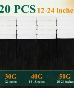 4. Opciones de color y tamaño variadas: La longitud va desde 12 a 24 pulgadas, con un peso de 30 a 50 gramos. Hay más de 20 colores para elegir. Sin embargo, tenga en cuenta que pueden ocurrir ligeras diferencias de color debido a variaciones en el color de la pantalla y la iluminación.