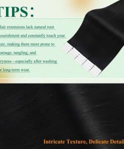 5. Atención: La cinta perderá gradualmente su pegajosidad, especialmente después de lavarse el cabello, por lo que es necesario reemplazar la cinta cada 2-4 semanas. El rizado requiere una temperatura por debajo de 356 grados Celsius para el peinado, y el teñido solo puede teñir colores más oscuros.