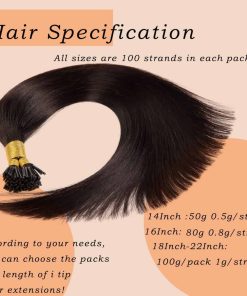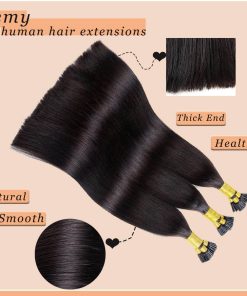 Extensiones de Cabello Humano I-Tip, 16 Pulgadas 40cm #1B