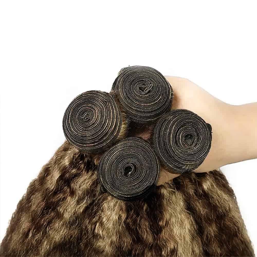 Color del Cabello: P4/613 Highlight Brown Mixed With Blonde Piano Color Kinky Straight Bundles de Cabello Humano.
